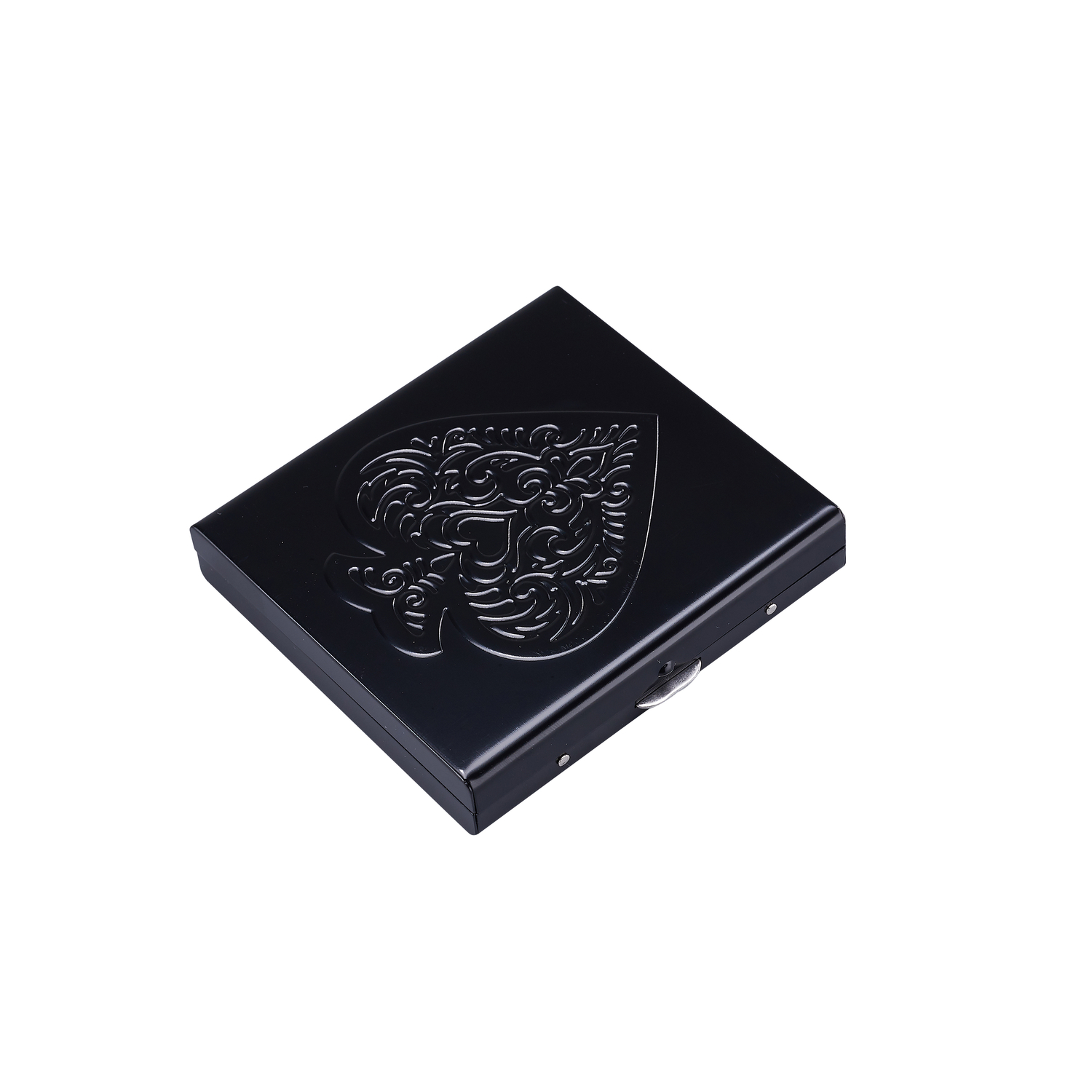 Porta sigarette in metallo con cuori e picche, blocco a clip.