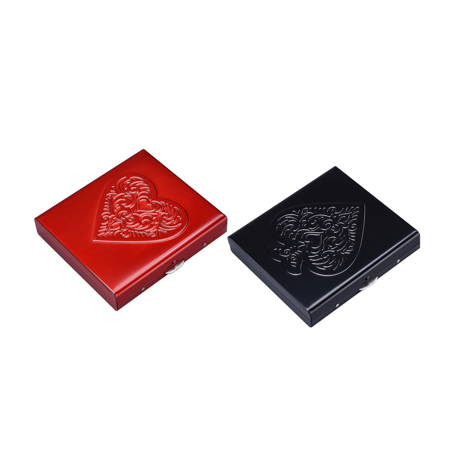 Porta sigarette in metallo con cuori e picche, blocco a clip.