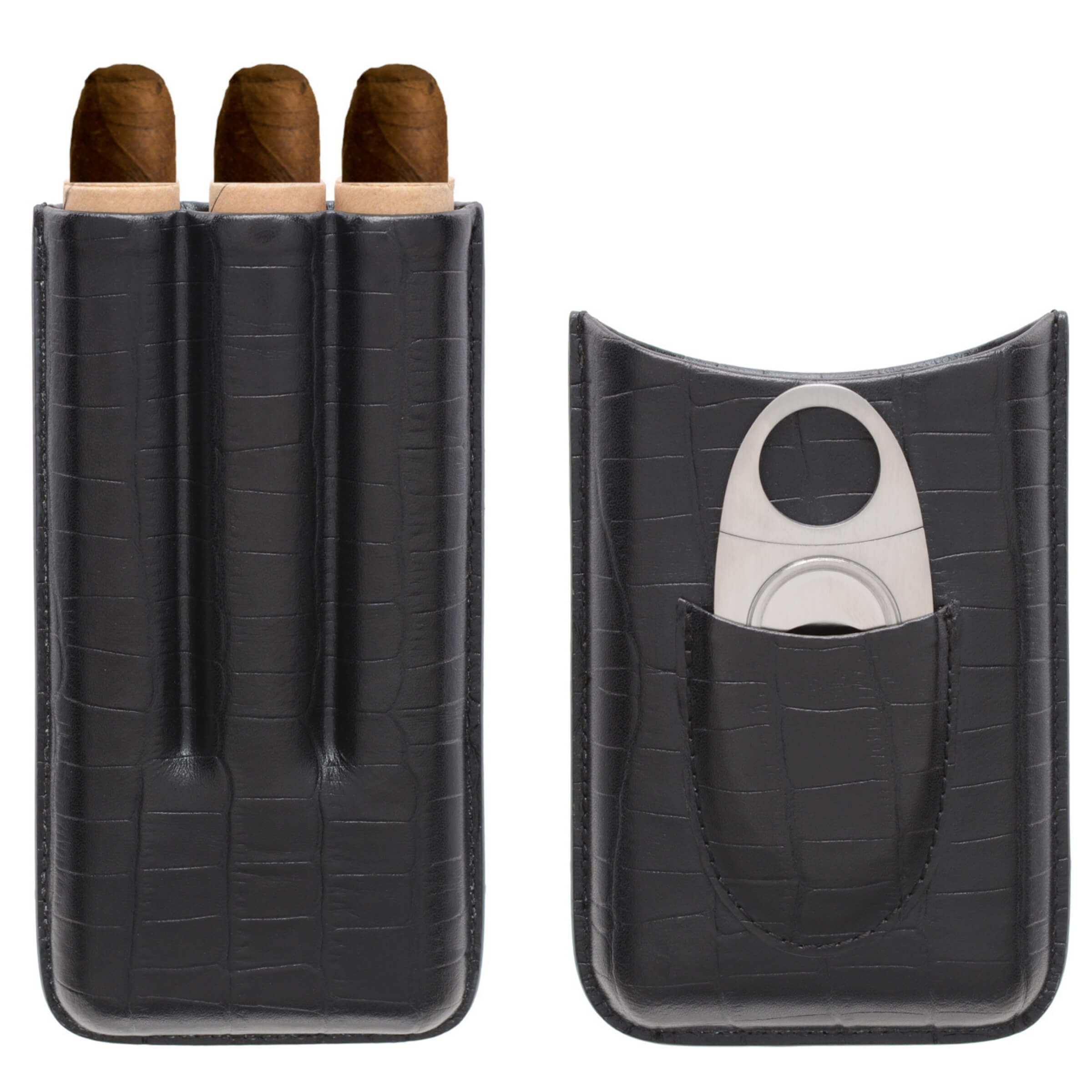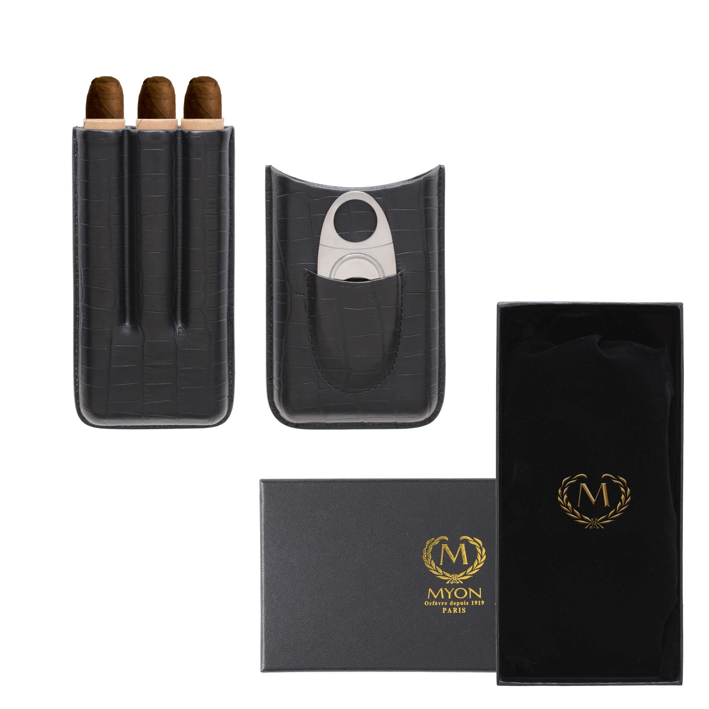 Eleganza, protezione e funzionalità si fondono in un unico accessorio pensato per chi ama prendersi il tempo di gustare un sigaro in ogni dettaglio. Questo porta sigari firmato Myon unisce il fascino della pelle vera lavorata con effetto cocco alla praticità di una custodia studiata per accogliere tre sigari mantenendone forma, integrità e umidità residua. Ideale per gli spostamenti, le serate in compagnia o semplicemente per custodire con stile una piccola selezione personale, si presenta come una soluzione raffinata e compatta, pensata per rispondere con classe alle esigenze dell'appassionato moderno. La presenza del tagliasigari in acciaio inox integrato ne amplifica il valore funzionale, offrendo un kit completo sempre a portata di mano.• Vera Pelle Nera: La struttura esterna è realizzata in vera pelle con lavorazione effetto cocco, per un aspetto elegante e una sensazione al tatto piacevolmente strutturata.• Capacità Interna: Il vano principale è sagomato per contenere fino a 3 sigari, mantenendoli ben separati e protetti da pressioni o urti.• Tagliasigari Integrato: Il retro della custodia ospita una tasca dedicata al tagliasigari a doppia lama, incluso nella confezione e realizzato in acciaio inox per un taglio netto e preciso.• Design Funzionale: La struttura semi-rigida garantisce protezione senza sacrificare la praticità d’uso. Il sistema scorrevole consente di adattare facilmente l’altezza del coperchio alla lunghezza dei sigari.• Confezione Regalo Inclusa: Il set viene fornito all’interno di un elegante cofanetto nero con logo dorato, perfetto anche come regalo per un cultore del rito del sigaro.Ogni dettaglio di questo porta sigari trasmette un equilibrio tra estetica e utilità. La scelta dei materiali, la cura nella lavorazione e la dotazione completa trasformano un oggetto da trasporto in un vero compagno di stile. È più di un accessorio: è un gesto di rispetto verso il proprio tempo e i propri rituali.
