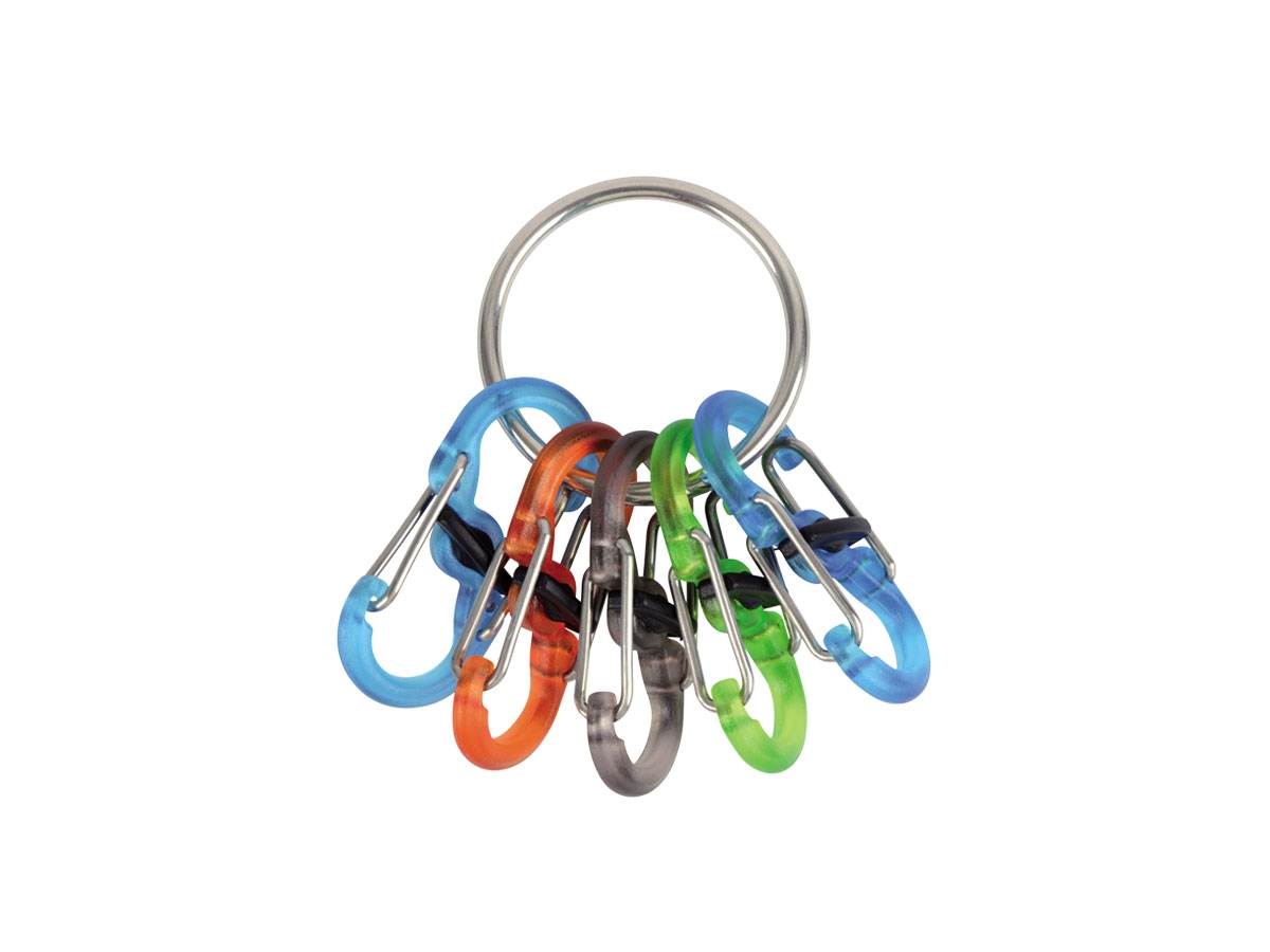 - Anello in acciaio inossidabile abbinato a 5 MicroLock S-Biner in plastica colorata con leva di bloccaggio centrale