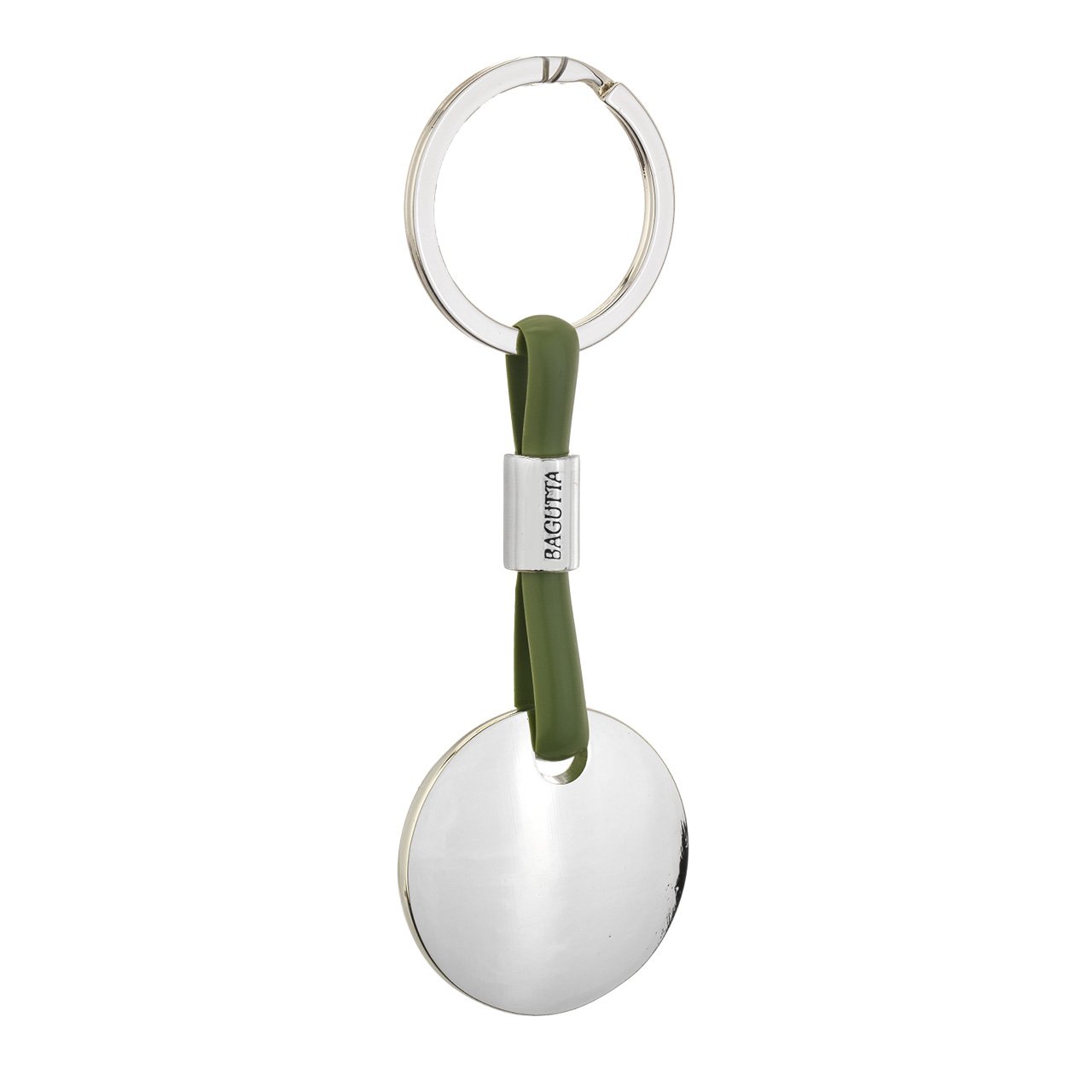 PORTACHIAVI SILVER PLATED CON TARGHETTA TONDA CORDONE IN SILICONE VERDE
