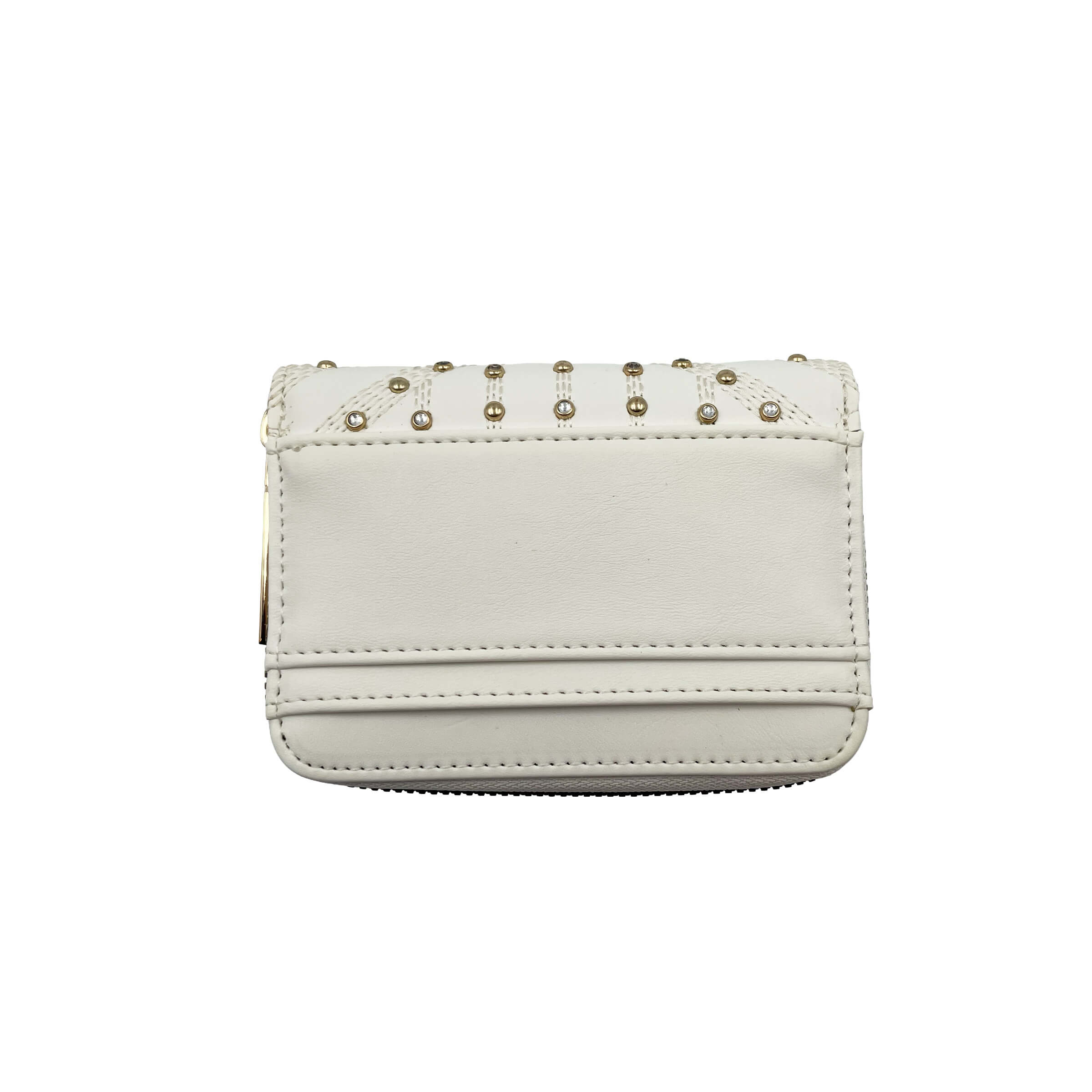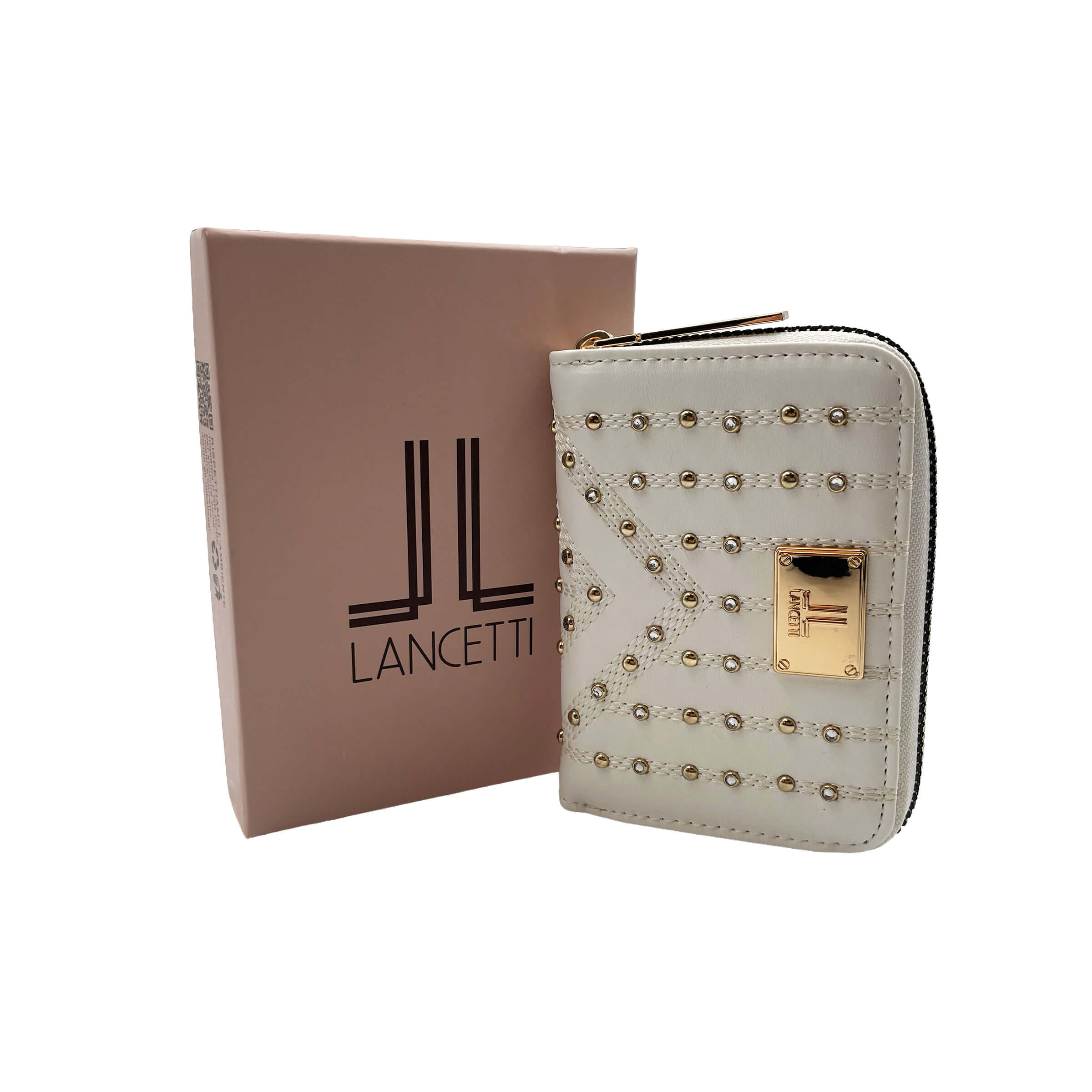 Il Portafoglio da Donna Lancetti Clash in Similpelle Bianco è un accessorio compatto e raffinato, pensato per la donna che desidera unire eleganza, luminosità e funzionalità in un unico complemento. Ideale per l’uso quotidiano, si distingue per uno stile femminile e curato nei dettagli.• Design sofisticato e luminoso: Realizzato in similpelle di qualità, il portafoglio si presenta in una elegante tonalità bianca, impreziosita da applicazioni decorative e dettagli in metallo dorato con logo Lancetti. Un design ricercato che valorizza qualsiasi borsa e outfit.• Organizzazione pratica e intelligente: Nonostante le dimensioni compatte, l’interno è strutturato per offrire un’ottima gestione degli oggetti essenziali. È presente uno scomparto principale con chiusura a zip, suddiviso in due tasche interne, oltre a una tasca portamonete centrale con zip. Completano la dotazione 2 slot per carte di credito o tessere, facilmente accessibili.• Dimensioni compatte: Con misure pari a 12,5 x 9,3 x 2,8 cm, il portafoglio si inserisce facilmente in borse di piccole dimensioni, mantenendo un profilo sottile e ordinato senza rinunciare alla funzionalità.• Materiali resistenti: La similpelle selezionata assicura una buona resistenza all’usura quotidiana, contribuendo a mantenere nel tempo l’aspetto elegante e la struttura del portafoglio.• Versatile per ogni occasione: Perfetto sia per l’uso quotidiano che per contesti più curati, è un accessorio adatto a donne di tutte le età che apprezzano uno stile pulito, luminoso e distintivo.Il Portafoglio Lancetti Clash Bianco rappresenta un equilibrio ideale tra design compatto, eleganza e praticità, confermandosi un accessorio indispensabile per chi ama i dettagli raffinati e la qualità firmata Lancetti.