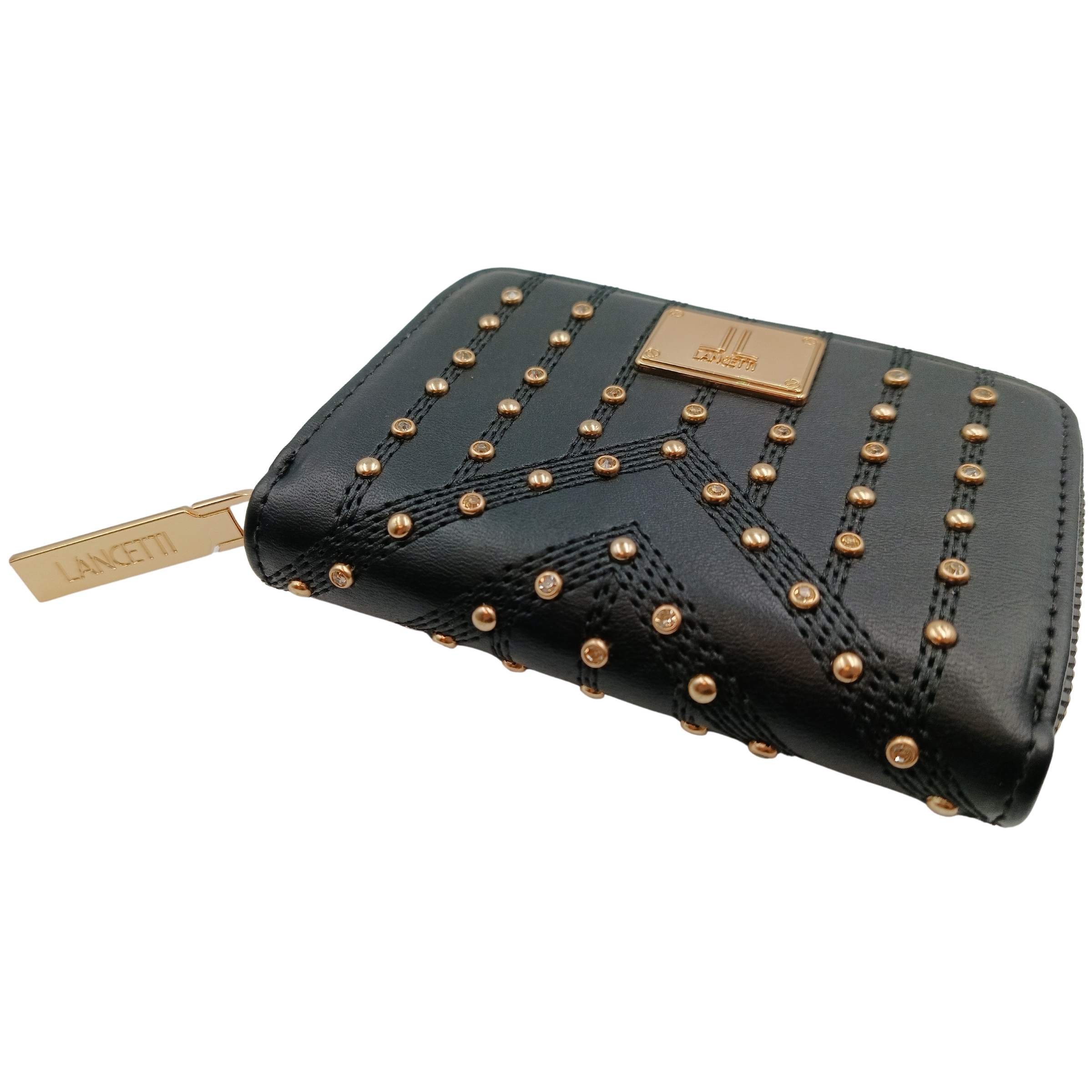 Scopri il Portafoglio Lancetti Clash Nero, l'accessorio ideale per la donna moderna che cerca eleganza e funzionalità in un formato compatto. Realizzato in similpelle di alta qualità, questo portafoglio unisce lusso e resistenza, rendendolo perfetto per l'uso quotidiano in ogni occasione.• Design Sofisticato e Pratico: Il Portafoglio Lancetti presenta un design elegante in colore nero, facile da abbinare con qualsiasi borsa o outfit. La sua struttura ben organizzata ti permette di tenere tutto in ordine con stile.• Organizzazione Ottimale: Nonostante le dimensioni ridotte, il portafoglio offre una capacità sorprendente con 1 scomparto a cerniera contenente 2 tasche e una tasca portamonete con zip al centro. Inoltre, include 2 slot per carte di credito o tessere, posizionati strategicamente per un facile accesso.• Dimensioni Compatte: Con misure di soli 12.5 x 9.3 x 2.8 cm, questo portafoglio si adatta perfettamente a qualsiasi borsa, mantenendo un profilo sottile e leggero senza sacrificare lo spazio necessario per i tuoi essenziali.• Materiali Durevoli: La similpelle selezionata per la fabbricazione di questo portafoglio assicura una lunga durata e una resistenza elevata all'usura, garantendo che il portafoglio mantenga la sua bellezza nel tempo.• Versatile per Ogni Occasione: Perfetto sia per la routine di lavoro che per eventi speciali, questo portafoglio è adatto a donne di tutte le età, offrendo un tocco di classe funzionale che non passa inosservato.Il Portafoglio Lancetti Clash Nero in Similpelle è la scelta ideale per chi cerca un'opzione elegante che non sacrifica l'organizzazione. Un must-have per ogni donna che apprezza la qualità e desidera un prodotto che possa durare nel tempo.