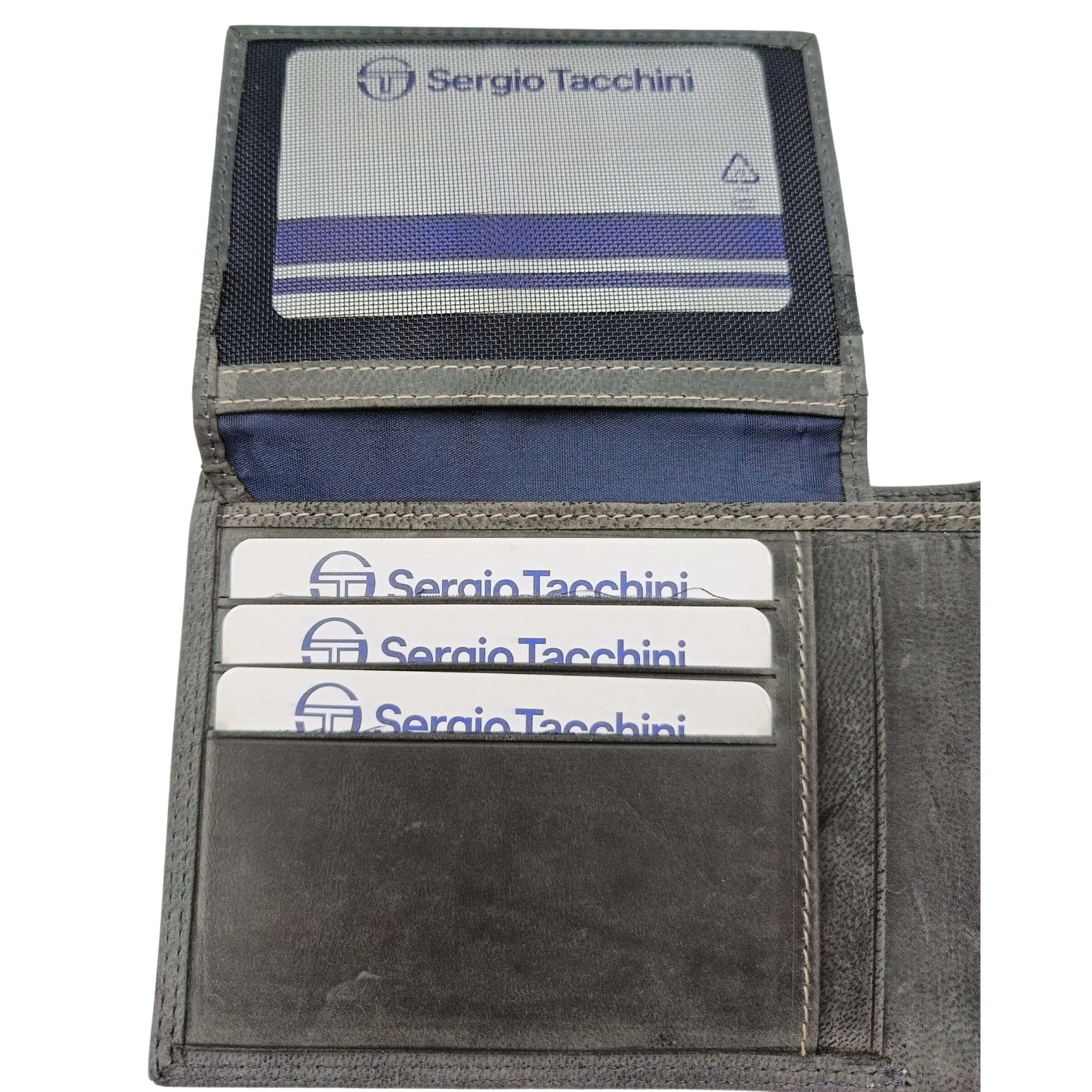 Il portafoglio da uomo Sergio Tacchini in vera pelle color navy blu unisce design elegante e funzionalità quotidiana in un accessorio compatto e raffinato. Il colore blu profondo con sfumature naturali crea un effetto visivo sobrio ma moderno, mentre il logo in rilievo e le cuciture chiare a contrasto aggiungono personalità e cura nei dettagli. Un oggetto pensato per chi desidera praticità senza rinunciare allo stile.