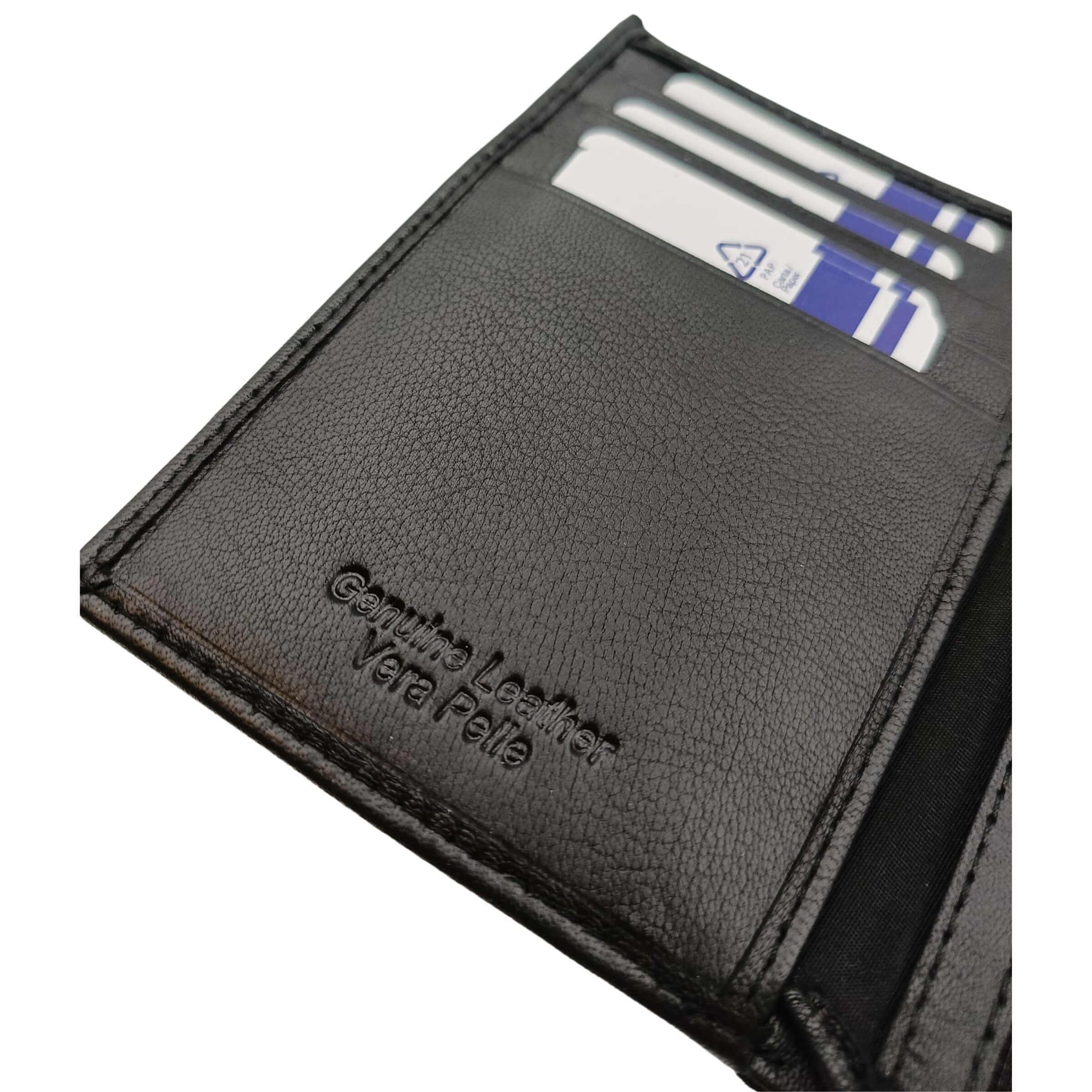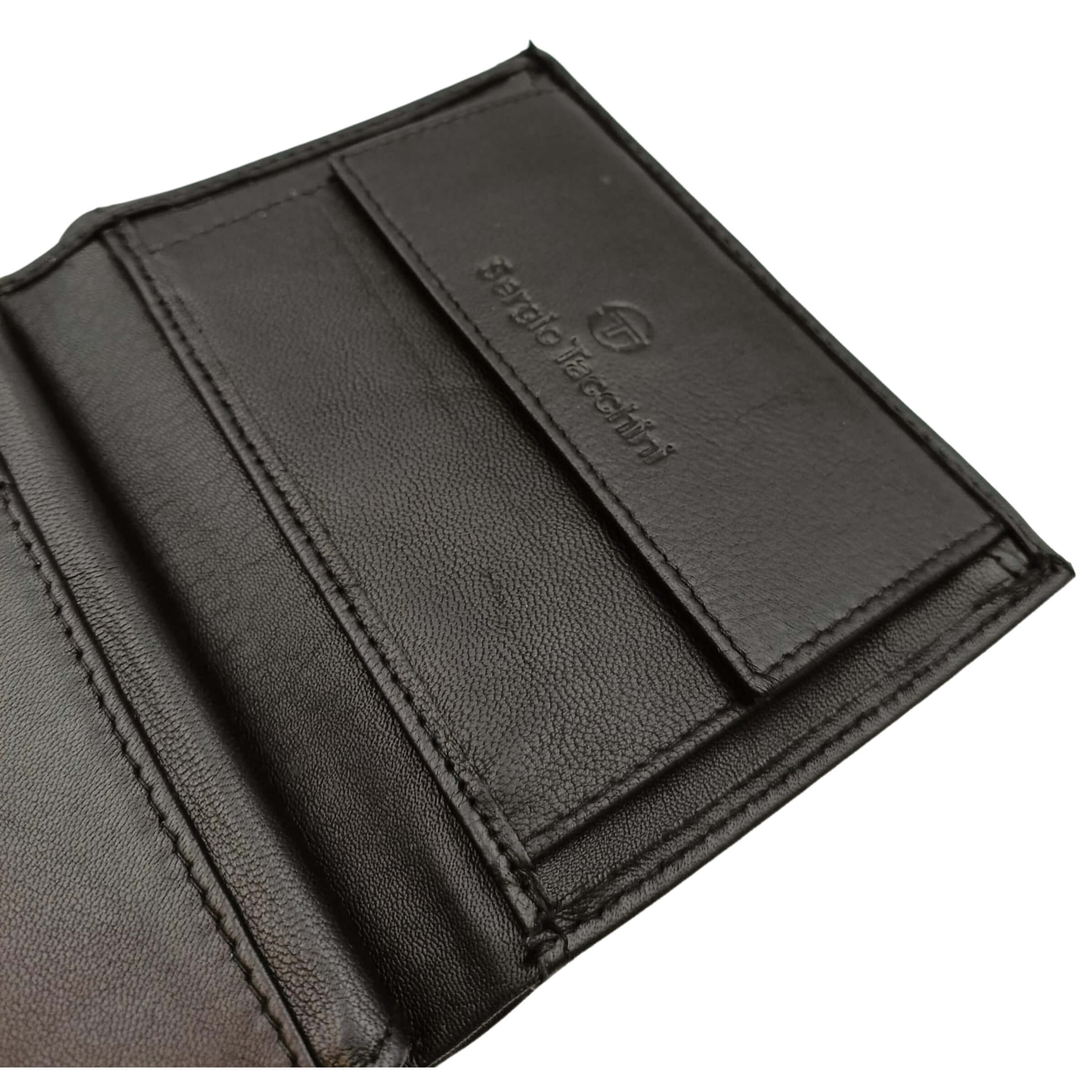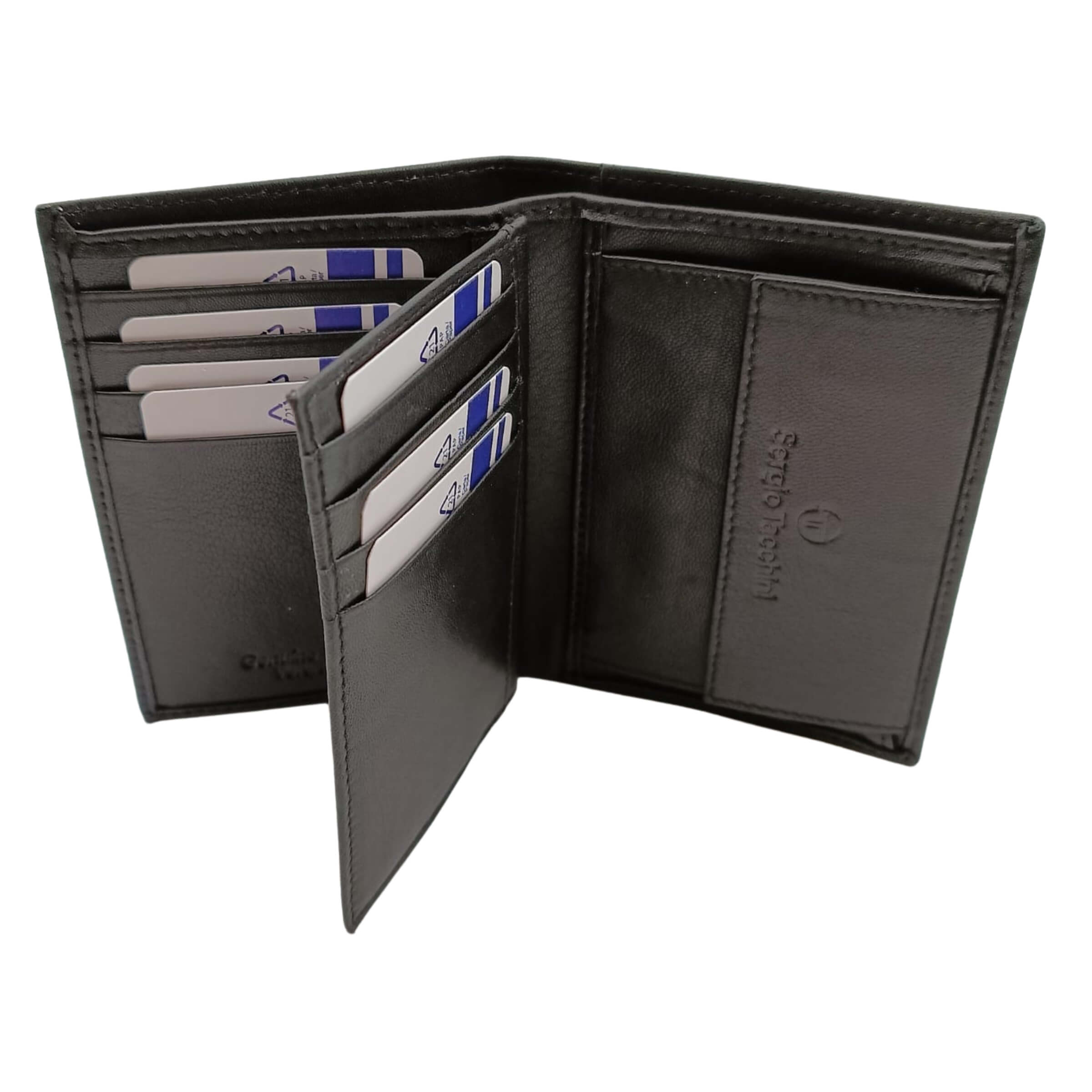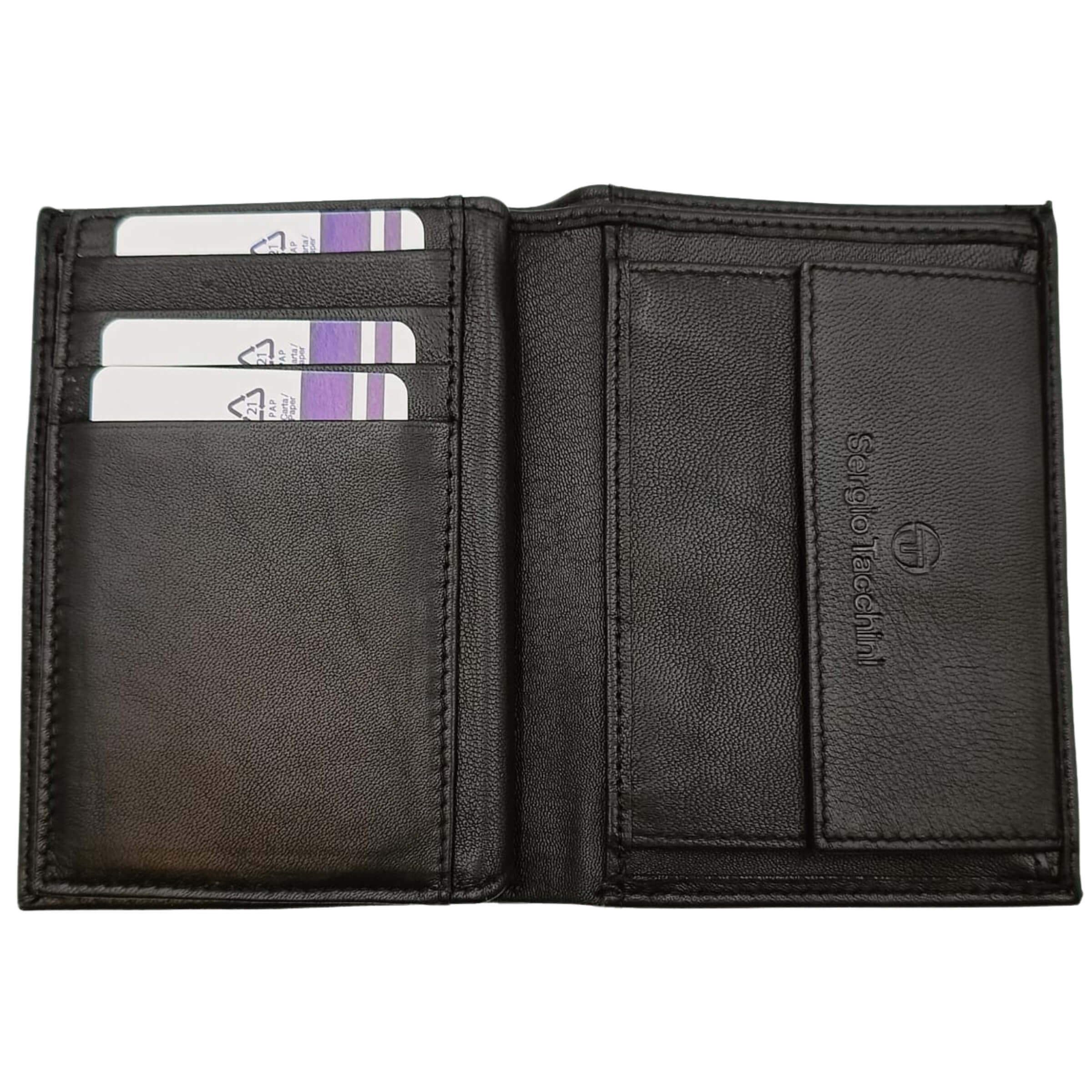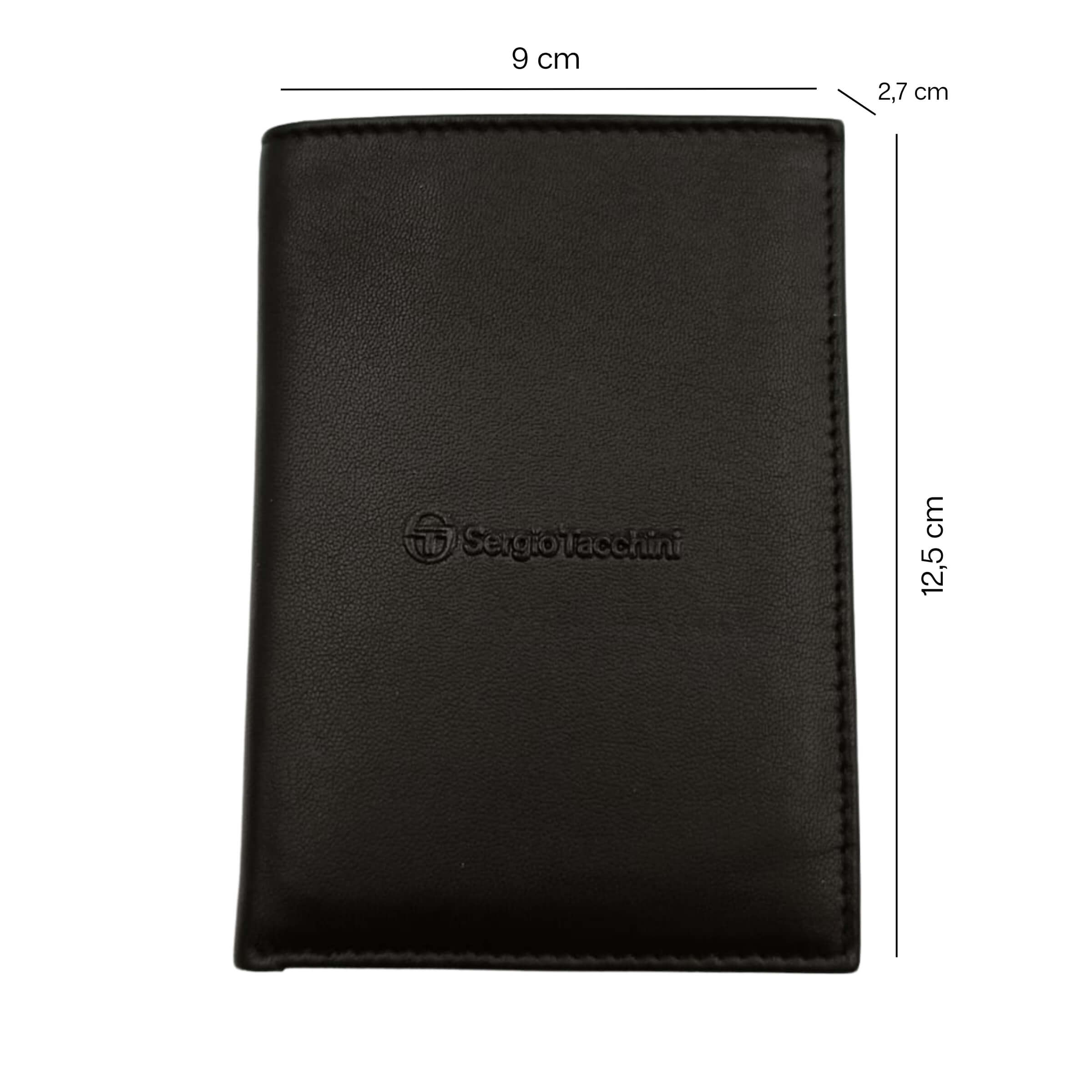 Il portafoglio verticale da uomo Sergio Tacchini in vera pelle nera è l'accessorio ideale per chi cerca praticità, eleganza e resistenza in un unico prodotto. Caratterizzato da un design essenziale e professionale, si adatta perfettamente alla vita quotidiana, grazie alla sua struttura interna ben organizzata. Il logo impresso in rilievo dona un tocco di autenticità, mentre la pelle naturale conferisce una sensazione morbida e piacevole al tatto.• Vera pelle: Realizzato in vera pelle di alta qualità, resistente e morbida, pensata per durare nel tempo e per un uso quotidiano comodo ed elegante.• Design verticale compatto: La forma sottile e slanciata permette di inserire il portafoglio nella tasca senza creare spessore, rendendolo ideale anche per chi indossa pantaloni dal taglio moderno.• 8 slot per carte: Otto alloggiamenti per carte di credito, tessere sanitarie, badge o altre card, per tenere tutto sempre a portata di mano in modo ordinato.• 3 tasche supplementari: Perfette per custodire ricevute, biglietti da visita o piccoli documenti da tenere separati.• 1 scomparto banconote: Ampio e comodo, adatto a banconote di ogni formato e documenti più grandi.• Finestra trasparente pieghevole: Ideale per esibire carta d’identità, patente o badge in modo immediato, con rete protettiva.• Confezione regalo: Incluso in elegante scatola firmata Sergio Tacchini, perfetta anche come regalo sobrio e di classe.• Dimensioni compatte: 12,5 x 9 x 2,7 cm, perfette per un uso quotidiano senza rinunciare alla capienza e all’organizzazione.Il portafoglio verticale nero Sergio Tacchini è un perfetto equilibrio tra stile classico e funzionalità moderna. Una scelta raffinata per l’uomo che desidera distinguersi con discrezione, nella quotidianità come nelle occasioni più eleganti.