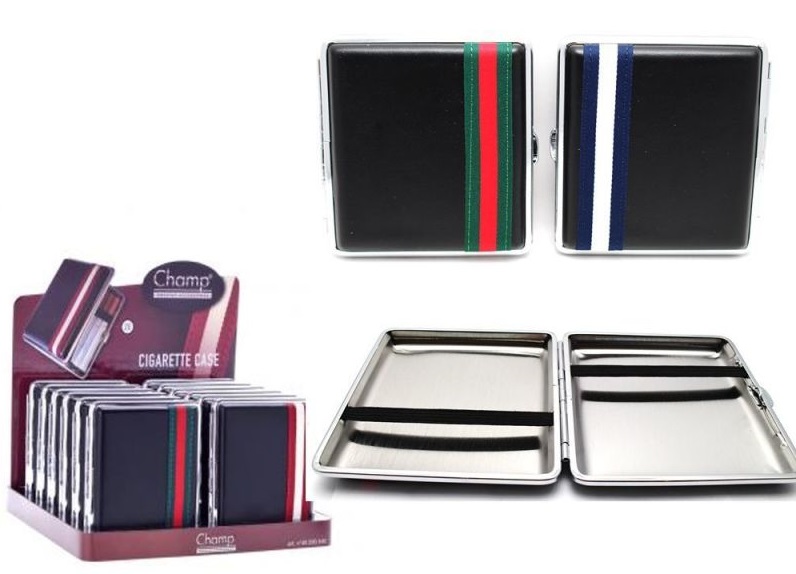 Il portasigarette Pelle Stripes è l’accessorio ideale per chi desidera proteggere le sigarette con stile e sobrietà. Caratterizzato da una struttura in metallo con rivestimento esterno effetto pelle, si distingue per la decorazione con strisce colorate centrali, disponibili in due varianti: rosso-verde e blu-bianco. Il design compatto ed elegante lo rende adatto a ogni situazione, dal quotidiano al formale, con una resa estetica pulita e moderna. L’interno, interamente in acciaio satinato, è dotato di doppia fascia elastica per mantenere le sigarette ben ordinate e protette.• Rivestimento in ecopelle con dettagli a strisce: Il motivo a righe verticali centrali conferisce un tocco sportivo ed elegante al tempo stesso, rendendo l’accessorio visivamente distintivo.• Struttura in metallo robusto: La scocca rigida assicura una protezione efficace contro urti, schiacciamenti e deformazioni, prolungando la durata del contenuto.• Interno con fascia elastica: Le sigarette restano ben ferme all’interno del contenitore, evitando movimenti indesiderati durante il trasporto.• Chiusura a scatto funzionale: Il sistema di apertura e chiusura è rapido e sicuro, garantendo una tenuta affidabile anche in borse o tasche.Pensato per un pubblico attento ai dettagli, il portasigarette Pelle Stripes unisce funzionalità e carattere in un accessorio compatto e raffinato. Una soluzione concreta per chi cerca protezione, ordine e un tocco di personalità nella vita di tutti i giorni.