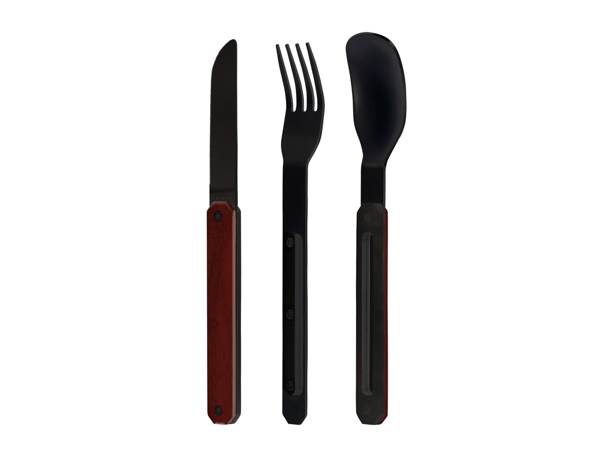 L' Akinod Straight Magnetic 12H34 è un pratico set di posate adatto ad una gita in campeggio, un'escursione o in ufficio. Il set è composto da una forchetta, un cucchiaio ed un coltello con lama seghettata e si assembla in modo compatto grazie alla presenza di magneti. Il suo design elegante e raffinato lo rende unico e la vasta gamma di motivi dei manici permette ad ogni membro del gruppo o della famiglia di selezionare il proprio Akinod 12H34. E' disponibile sia con finitura lucida che con finitura lucida nera.