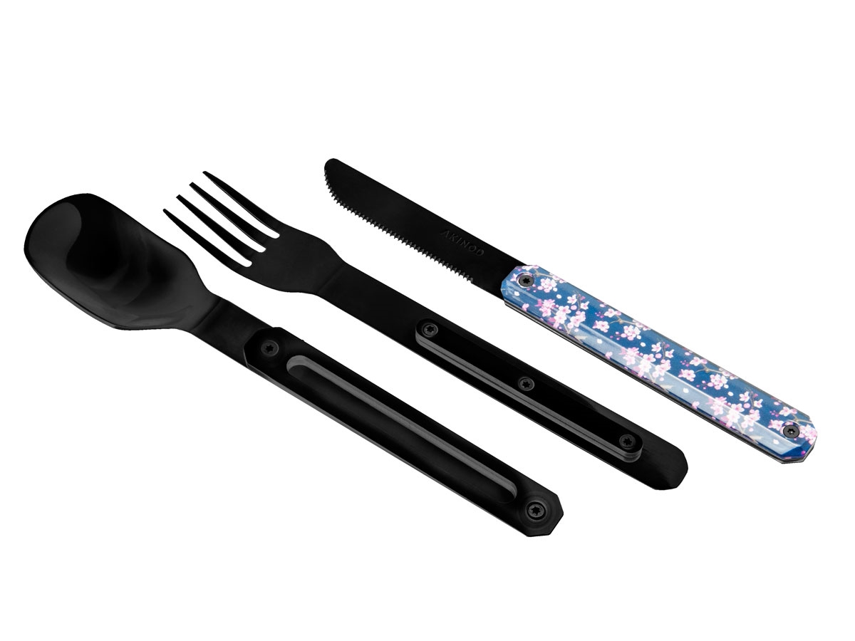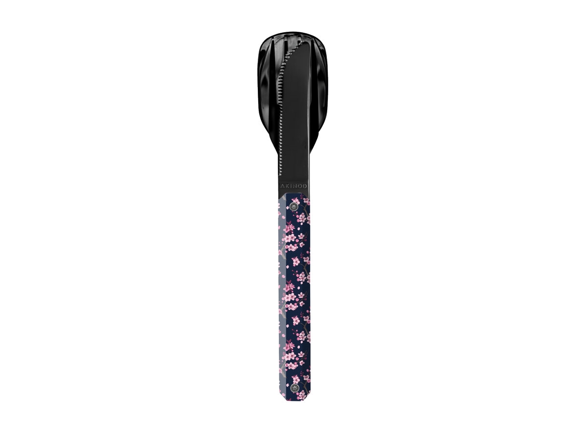 Akinod MAGNETIC STRAIGHT CUTLERY 12H34 BLACK MIRROR Fleurs de Cerisier