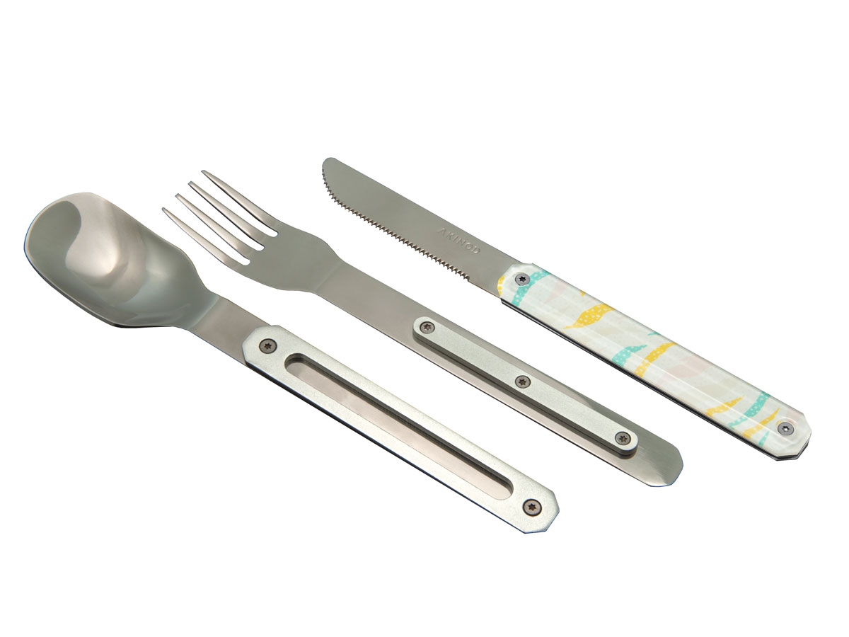 L' Akinod Straight Magnetic 12H34 è un pratico set di posate adatto ad una gita in campeggio, un'escursione o in ufficio. Il set è composto da una forchetta, un cucchiaio ed un coltello con lama seghettata e si assembla in modo compatto grazie alla presenza di magneti. Il suo design elegante e raffinato lo rende unico e la vasta gamma di motivi dei manici permette ad ogni membro del gruppo o della famiglia di selezionare il proprio Akinod 12H34. E' disponibile sia con finitura lucida che con finitura lucida nera.