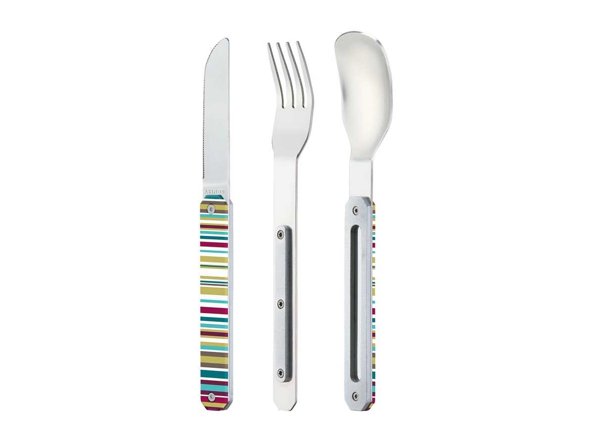 L' Akinod Straight Magnetic 12H34 è un pratico set di posate adatto ad una gita in campeggio, un'escursione o in ufficio. Il set è composto da una forchetta, un cucchiaio ed un coltello con lama seghettata e si assembla in modo compatto grazie alla presenza di magneti. Il suo design elegante e raffinato lo rende unico e la vasta gamma di motivi dei manici permette ad ogni membro del gruppo o della famiglia di selezionare il proprio Akinod 12H34. E' disponibile sia con finitura lucida che con finitura lucida nera.