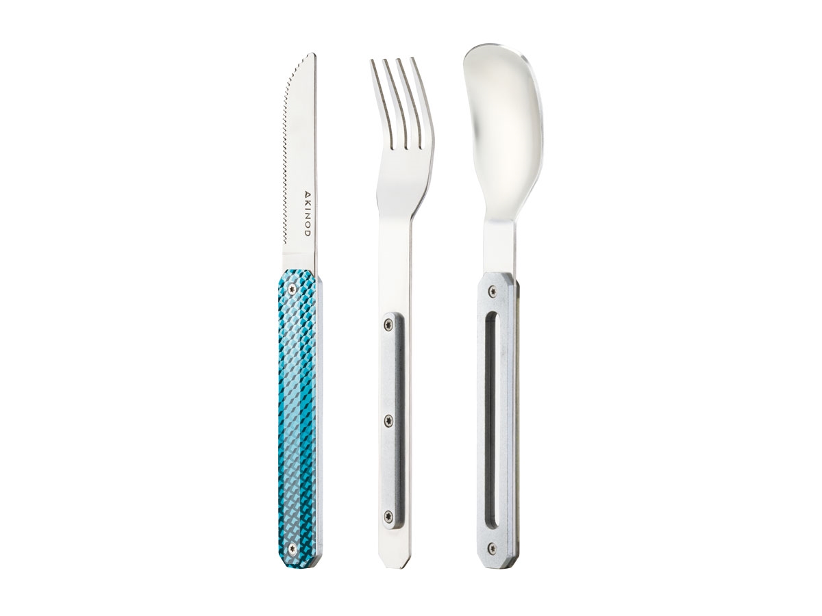 L' Akinod Straight Magnetic 12H34 è un pratico set di posate adatto ad una gita in campeggio, un'escursione o in ufficio. Il set è composto da una forchetta, un cucchiaio ed un coltello con lama seghettata e si assembla in modo compatto grazie alla presenza di magneti. Il suo design elegante e raffinato lo rende unico e la vasta gamma di motivi dei manici permette ad ogni membro del gruppo o della famiglia di selezionare il proprio Akinod 12H34. E' disponibile sia con finitura lucida che con finitura lucida nera.