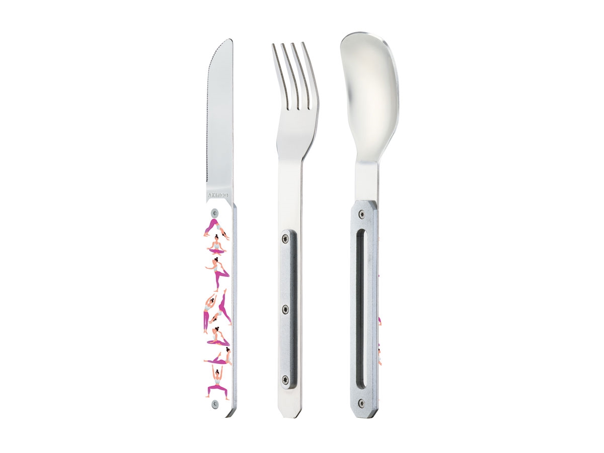 L' Akinod Straight Magnetic 12H34 è un pratico set di posate adatto ad una gita in campeggio, un'escursione o in ufficio. Il set è composto da una forchetta, un cucchiaio ed un coltello con lama seghettata e si assembla in modo compatto grazie alla presenza di magneti. Il suo design elegante e raffinato lo rende unico e la vasta gamma di motivi dei manici permette ad ogni membro del gruppo o della famiglia di selezionare il proprio Akinod 12H34. E' disponibile sia con finitura lucida che con finitura lucida nera.