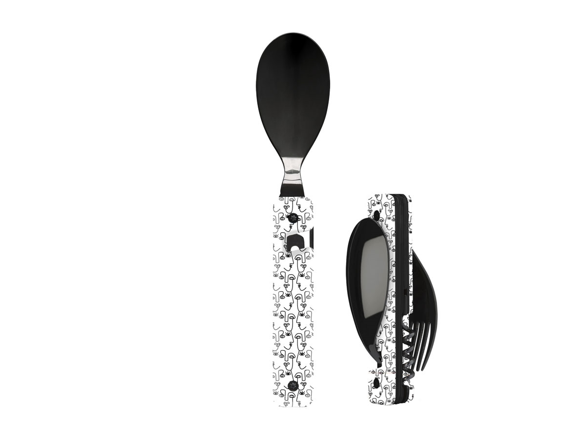 L' Akinod Multifunction 13H25 è un pratico set di posate adatto ad una gita in campeggio, un'escursione o in ufficio. Il set è composto da una forchetta, un cucchiaio ed un coltello con lama seghettata, ma anche da un apribottiglie, un apriscatole ed un cavatappi. Tutte le parti si assemblano l'una sull'altra in modo compatto grazie alla presenza di magneti incorporati. Il suo design elegante e raffinato lo rende unico e la vasta gamma di motivi dei manici permette ad ogni membro del gruppo o della famiglia di selezionare il proprio Akinod 13H25. E' disponibile sia con finitura lucida che con finitura lucida nera.
