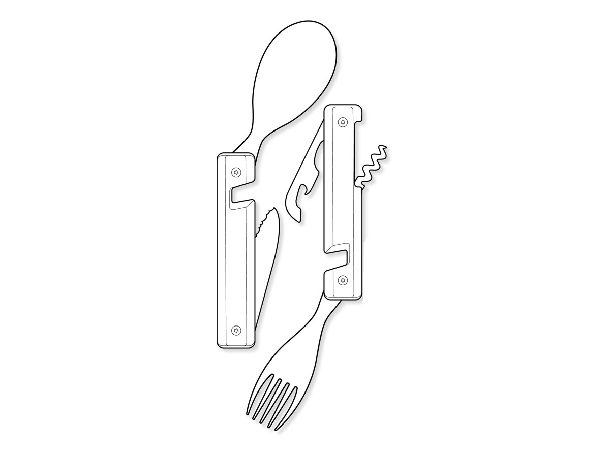 L' Akinod Multifunction 13H25 è un pratico set di posate adatto ad una gita in campeggio, un'escursione o in ufficio. Il set è composto da una forchetta, un cucchiaio ed un coltello con lama seghettata, ma anche da un apribottiglie, un apriscatole ed un cavatappi. Tutte le parti si assemblano l'una sull'altra in modo compatto grazie alla presenza di magneti incorporati. Il suo design elegante e raffinato lo rende unico e la vasta gamma di motivi dei manici permette ad ogni membro del gruppo o della famiglia di selezionare il proprio Akinod 13H25. E' disponibile sia con finitura lucida che con finitura lucida nera.