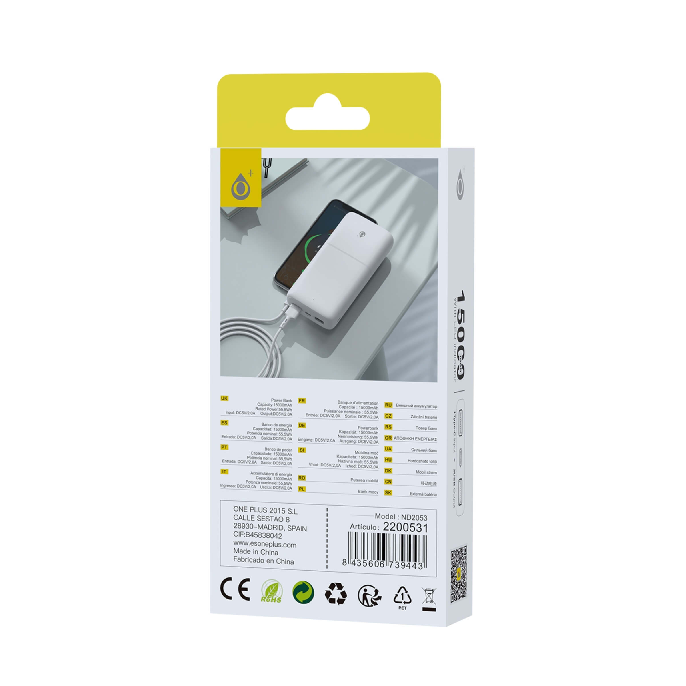 POWER BANK OMAR FAST CHARGE 15000 mAh BIANCO - 55,5 Watt - ND2053