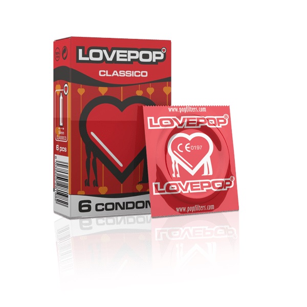 Profilattici LovePoP fabbricati con le più avanzate tecnologie da HBM (azienda statunitense) che rientra nella ristretta elitè dei migliori produttori mondiali di condoms. Larghezza 54mm. Presidio Medico Chirurgico classe 2B EN ISO 13485:2012 CE 0197 I profilattici LOVEPOP offrono una qualità superiore secondo i più alti standard di certificazione di sicurezza internazionali: La linea LOVEPOP Classico è confezionata in astuccio contenente 6 pezzi realizzato in formato pacchetto di sigarette, ideali per essere erogato dal distributore automatico.
