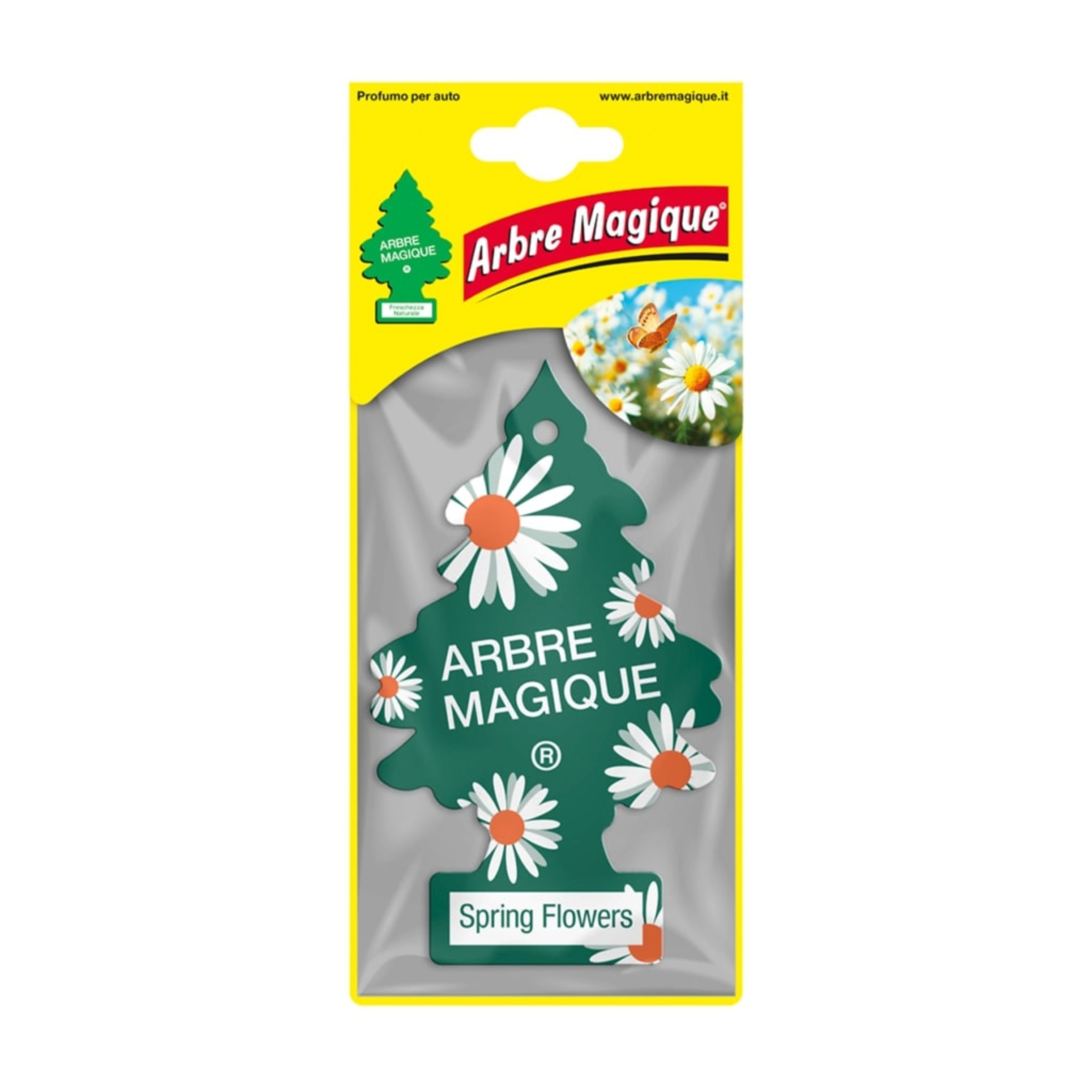 Arbre Magique Spring Flowers cattura l'essenza di una passeggiata primaverile nei campi fioriti, portando freschezza e vivacità dentro la tua auto.• Fragranza Fiorita e Frizzante: Profumo fresco con note di testa agrumate-acquatiche grazie al mandarino verde, seguito da un cuore floreale di rosa e mughetto, e chiude con un fondo caldo di sandalo, cedro e muschio bianco.• Durata Estesa: Questo deodorante per auto offre fino a 7 settimane di freschezza, garantendo un ambiente piacevolmente profumato lungo tutti i tuoi viaggi.• Esperienza Olfattiva Raffinata: Ogni nota è accuratamente selezionata per ricreare la sensazione di libertà e rinascita che solo la primavera sa offrire.Con Arbre Magique Spring Flowers, ogni viaggio in auto si trasforma in un'esperienza rinnovante e gioiosa, proprio come una vera passeggiata tra i campi in fiore.