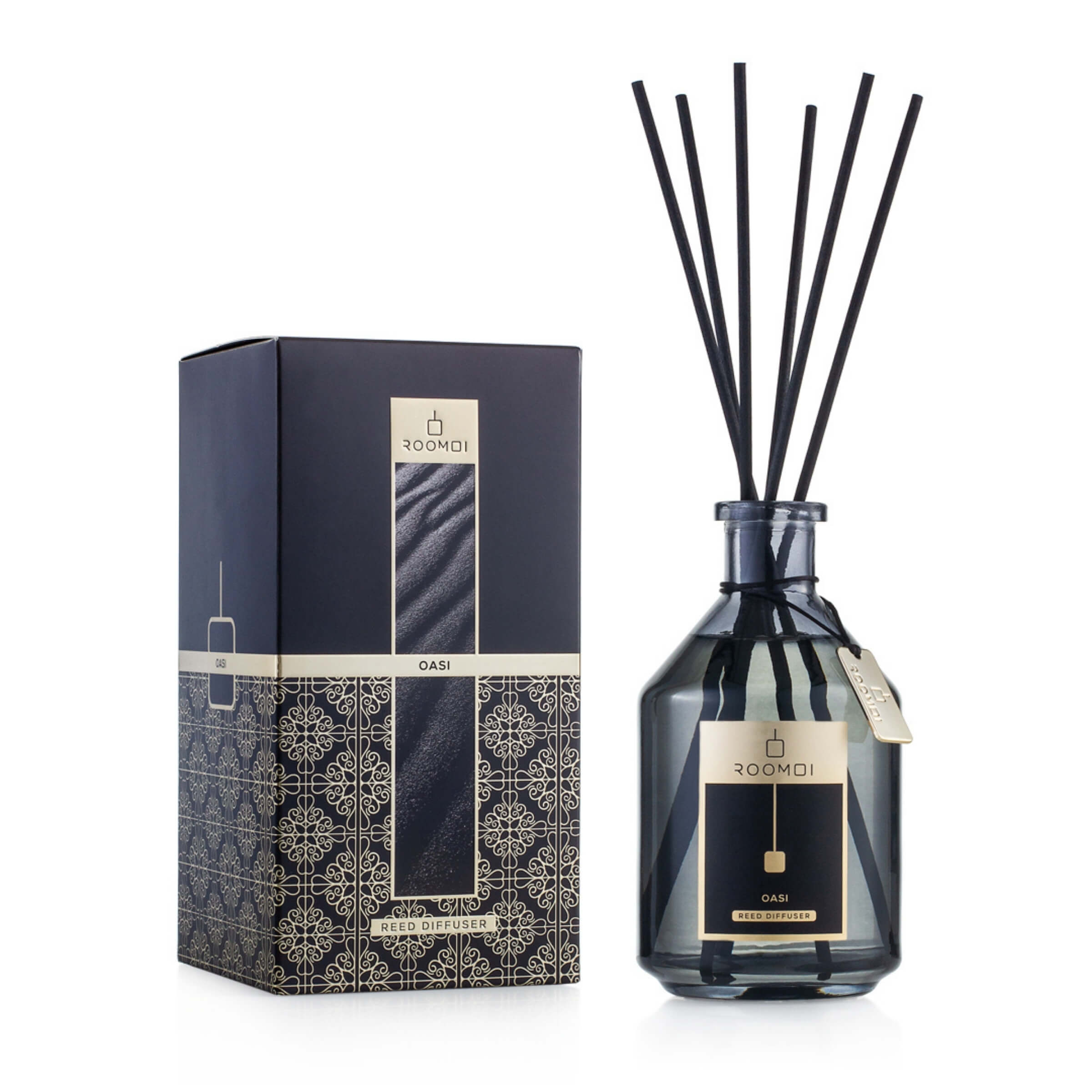 Intensa e ammaliante sinfonia di tè nero e vetiver, pronta ad arricchire i tuoi spazi con le atmosfere uniche delle notti d'Oriente e delle sue oasi. Il profumatore Oasi di ROOMOI, nel suo elegante formato da 500ml completo di bastoncini, è una melodia olfattiva che trasforma ogni ambiente con un tocco di mistero e raffinatezza.