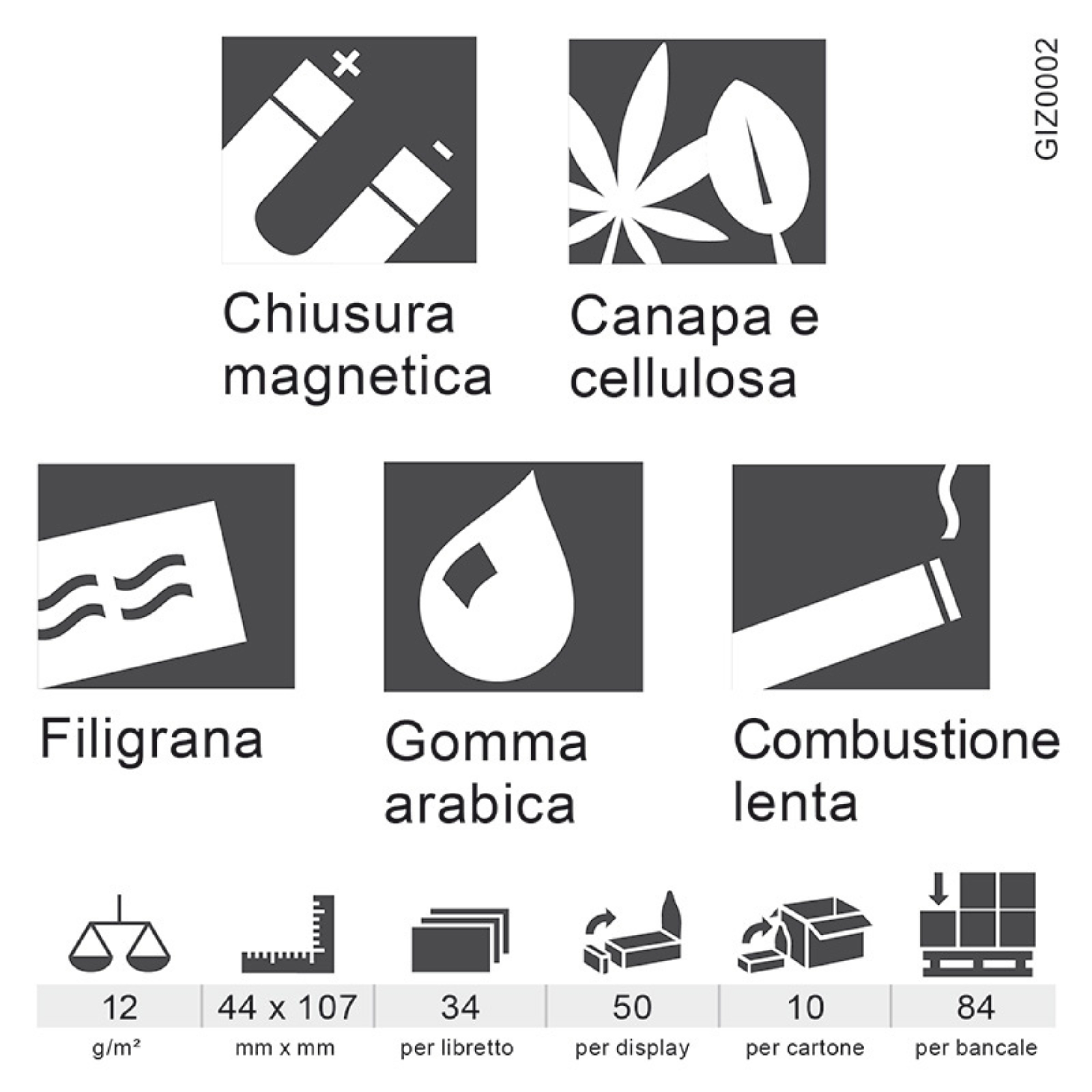 Le Cartine Gizeh Super Fine KS Slim rappresentano l'apice della qualità e della praticità per gli amanti del fumo consapevole. Confezionate in king size slim, queste cartine sono realizzate in cellulosa mista canapa, offrendo un'esperienza di fumo pura e naturale. Ogni confezione contiene 50 libretti, con 34 cartine ciascuno, assicurando una scorta duratura per gli utenti più assidui.• Qualità Superiore: La combinazione di cellulosa e canapa crea una carta sottile da 12 g/m2, progettata per bruciare in modo uniforme e lento, garantendo così un'esperienza ottimale ad ogni utilizzo.• Chiusura Pratica: Ogni libretto è dotato di una chiusura magnetica, una caratteristica innovativa che mantiene le cartine in perfetto stato e facilita il trasporto senza rischi di danneggiamento o dispersione.• Gomma Arabica Naturale: L'adesivo utilizzato in queste cartine è fatto di gomma arabica, una sostanza completamente naturale derivata dalla resina di acacia. Questa scelta etica non solo garantisce la sostenibilità del prodotto, ma assicura anche un gusto puro, senza interferenze.• Eco-compatibilità e Sostenibilità: L'impegno di Gizeh verso l'ambiente è evidente nella scelta dei materiali e nelle tecniche di produzione, che rispettano sia la natura sia l'utente finale.• Ampia Disponibilità: Con 50 libretti per confezione, gli appassionati di fumo possono godere della comodità di avere sempre a disposizione una scorta adeguata di cartine di alta qualità, pronte per ogni occasione.Le Cartine Gizeh Super Fine KS Slim 50 sono l'ideale per chi cerca un prodotto di alta qualità che combina praticità, sostenibilità e piacere. Scegliere queste cartine significa optare per un'esperienza di fumo superiore, nel pieno rispetto dell'ambiente e delle proprie preferenze.
