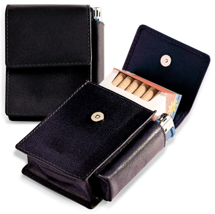 PORTA PACCHETTO IN VERA PELLE CON PORTA ACCENDINO EGOIST - NERO - JK07002