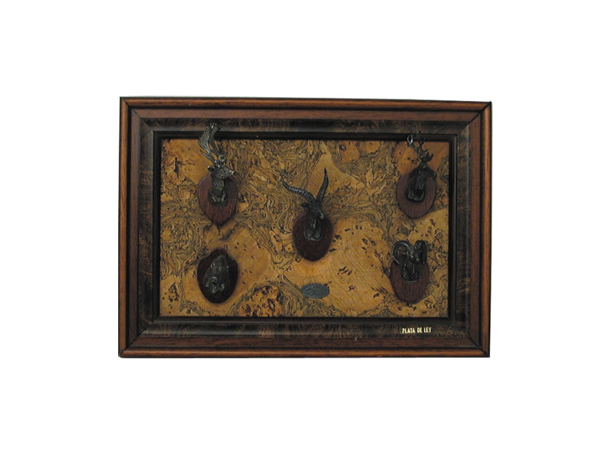 Nel quadro sono inseriti 5 trofei di caccia lavorati in argento sterling da artigiani cordovani.