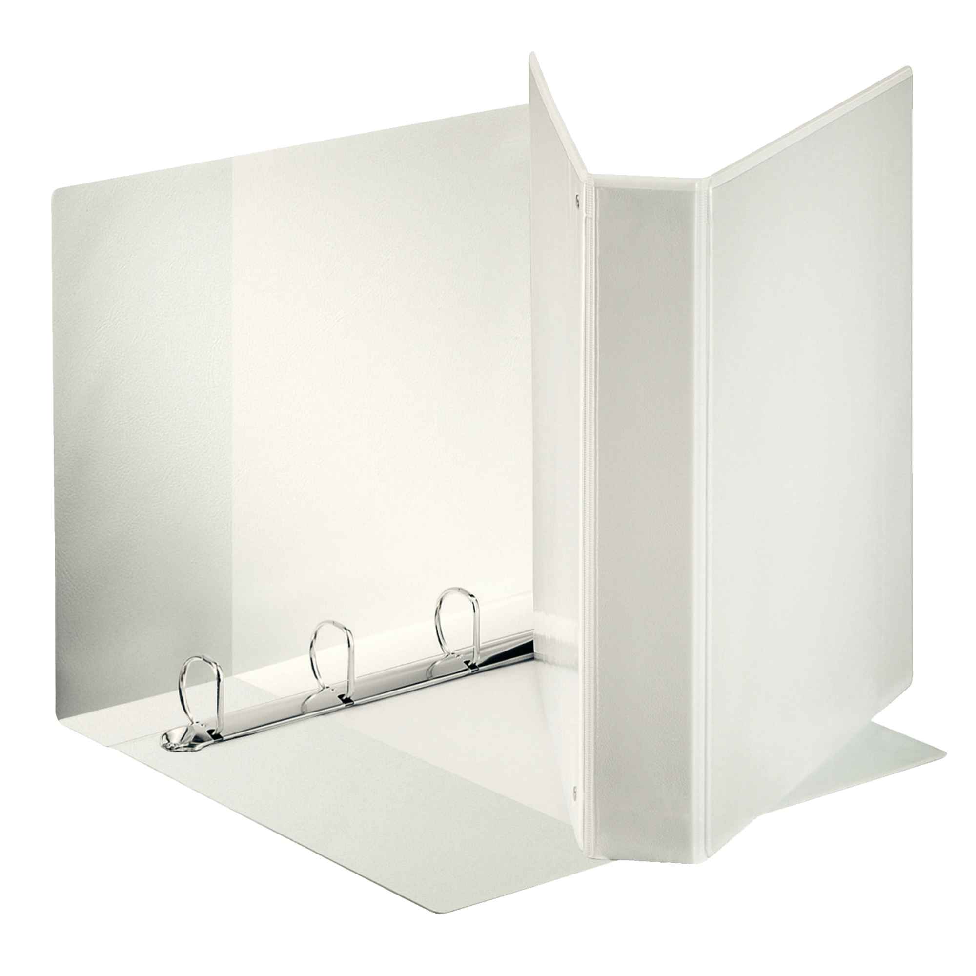 RACCOGLITORE DISPLAY FORMATO MAXI, IN CARTONE DA 2 MM RIVESTITO IN POLIPROPILENE ECO-COMPATIBILE CON FINITURA TIPO PELLE. IL RIVESTIMENTO, INCOLLATO SU ENTRAMBI I LATI E SALDATO AI BORDI, GARANTISCE UN PRODOTTO DI QUALITA' ECCELLENTE. LA PERSONALIZZAZIONE E' RESA AGEVOLE DA TRE TASCHE ESTERNE, MENTRE DUE TASCHE INTERNE PERMETTONO DI CONTENERE I PROPRI APPUNTI. MECCANISMO A 4 ANELLI (A D, ALTEZZA 40 MM). FORMATO UTILE: 22X30 CM (A4). DIMENSIONI: 270X350X40 MM. CAPACITA': 380 FOGLI A4 (80 GR/MQ). COLORE BIANC