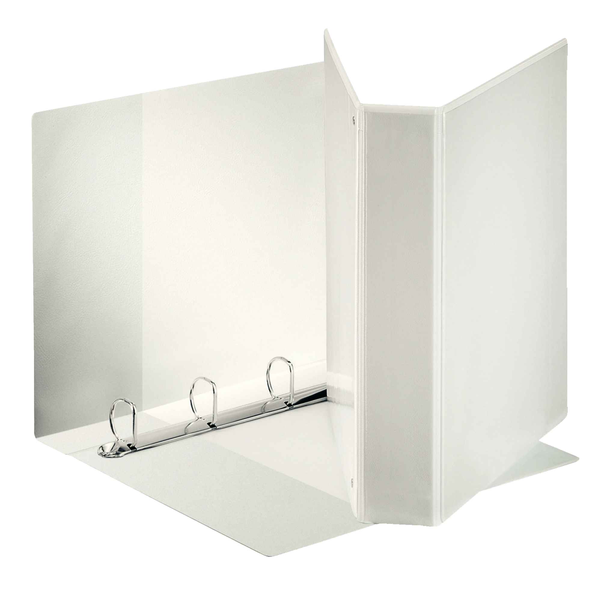 RACCOGLITORE DISPLAY FORMATO MAXI, IN CARTONE DA 2 MM RIVESTITO IN POLIPROPILENE ECO-COMPATIBILE CON FINITURA TIPO PELLE. IL RIVESTIMENTO, INCOLLATO SU ENTRAMBI I LATI E SALDATO AI BORDI, GARANTISCE UN PRODOTTO DI QUALITA' ECCELLENTE. LA PERSONALIZZAZIONE E' RESA AGEVOLE DA TRE TASCHE ESTERNE, MENTRE DUE TASCHE INTERNE PERMETTONO DI CONTENERE I PROPRI APPUNTI. MECCANISMO A 4 ANELLI (A D, ALTEZZA 50 MM). FORMATO UTILE: 22X30 CM (A4). DIMENSIONI: 270X350X50 MM. CAPACITA': 480 FOGLI A4 (80 GR/MQ). COLORE BIANC