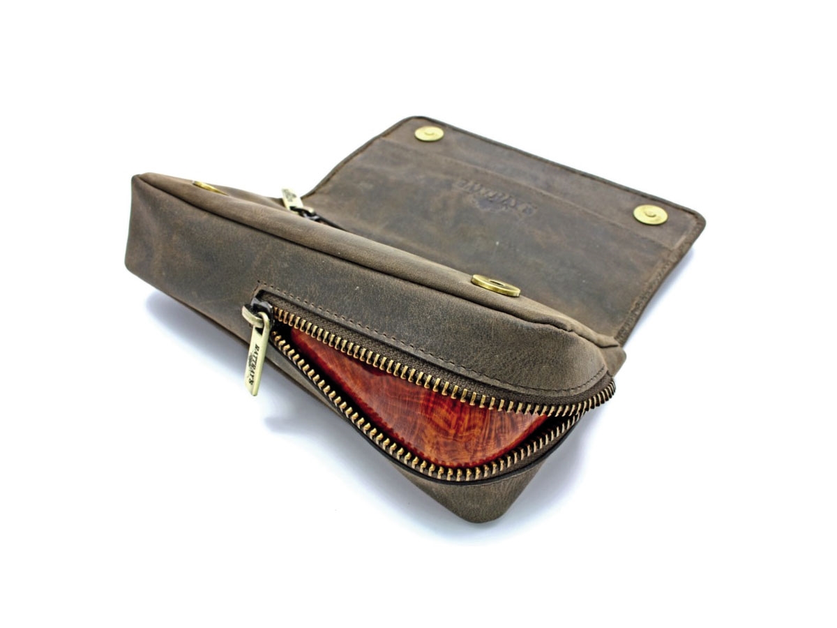 Borsa per 1 pipa realizzata in morbida pelle di vacchetta con cerniera YKK molto resistente.