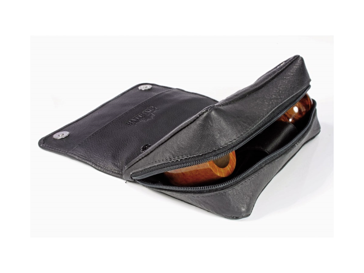 Borsa per 2 pipe realizzata in morbida pelle di vacchetta con cerniera YKK molto resistente.