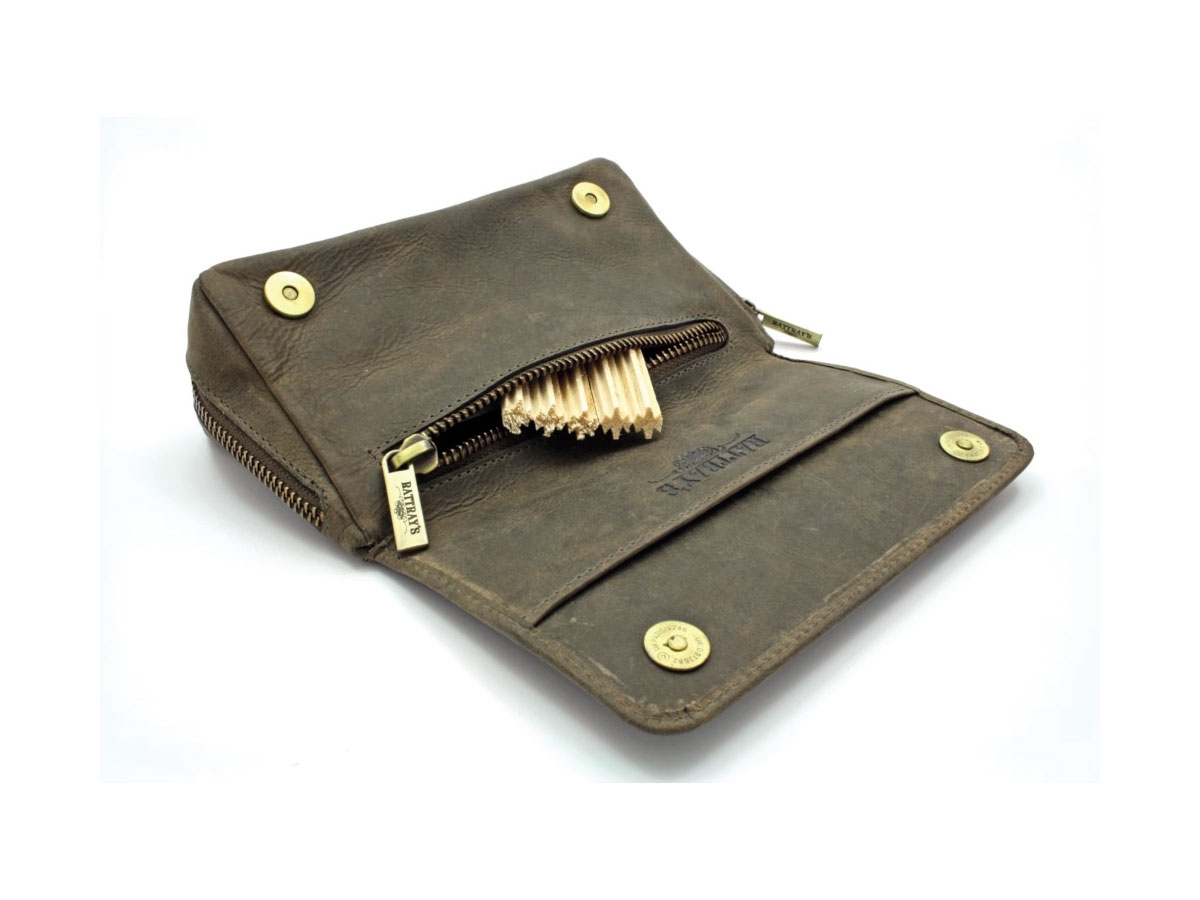 Borsa per 2 pipe realizzata in morbida pelle di vacchetta con cerniera YKK molto resistente.