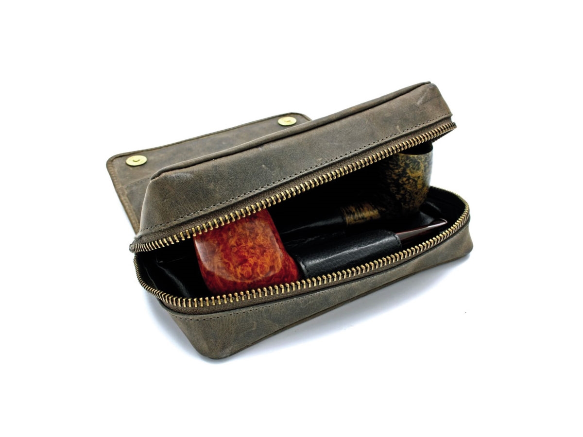 Borsa per 2 pipe realizzata in morbida pelle di vacchetta con cerniera YKK molto resistente.