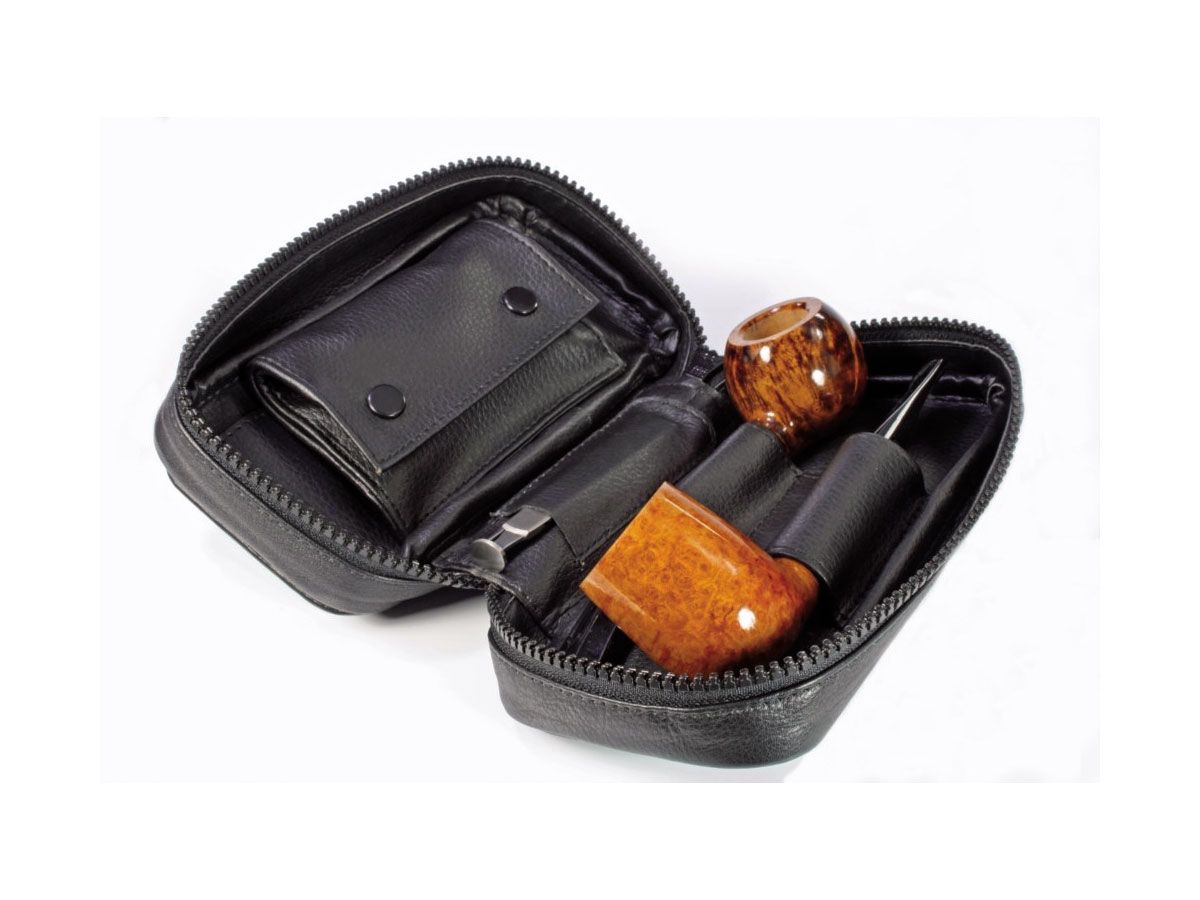 Borsa per 2 pipe realizzata in morbida pelle di vacchetta con cerniera YKK molto resistente.