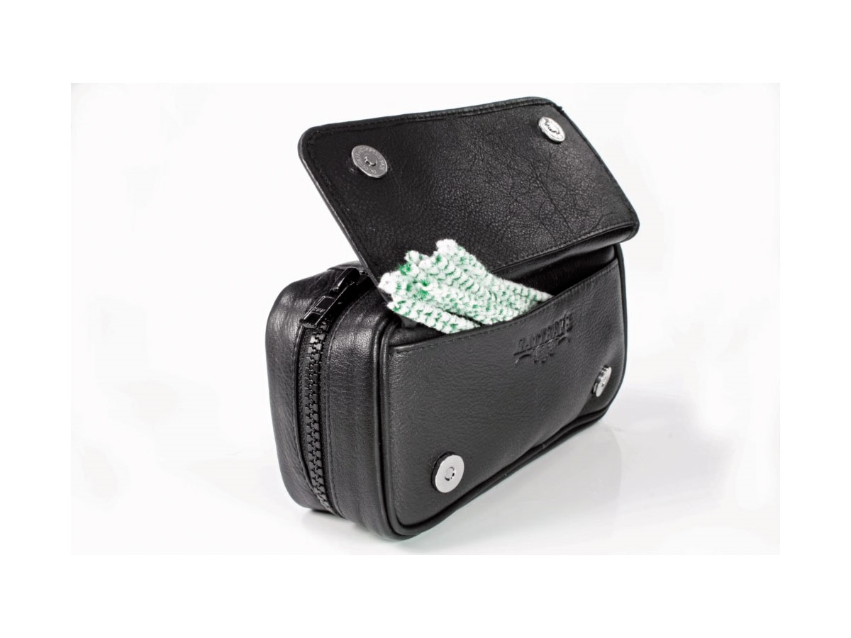 Borsa per 2 pipe realizzata in morbida pelle di vacchetta con cerniera YKK molto resistente.