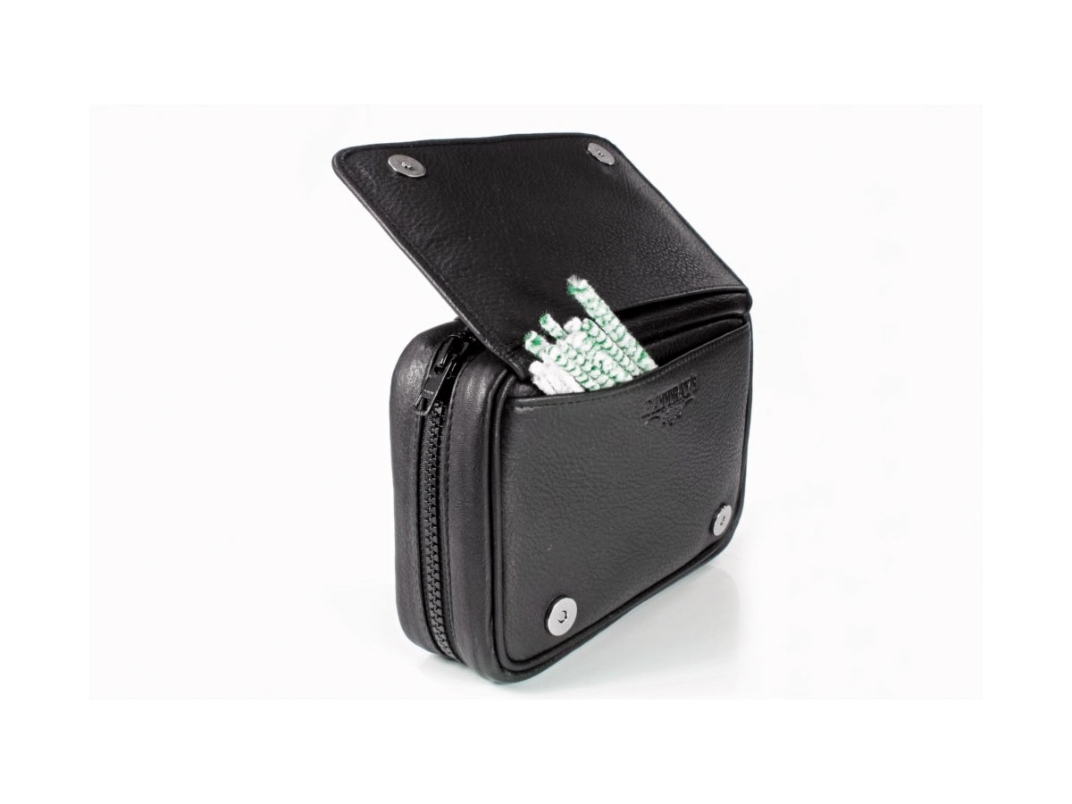 Borsa per 3 pipe realizzata in morbida pelle di vacchetta con cerniera YKK molto resistente.