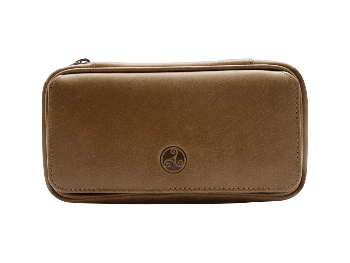 Borsa per 2 pipe realizzata con una resistente pelle di vacchetta che ricorda il colore marrone-dorato dell'orzo maltato. Le cerniere e i bottoni magnetici sono realizzati in ottone, conferendo alla serie Whisky un carattere nostalgico. Uno scomparto frontale serve per riporre l'attrezzatura. Con il passare del tempo la pelle svilupperà anche una bella patina.