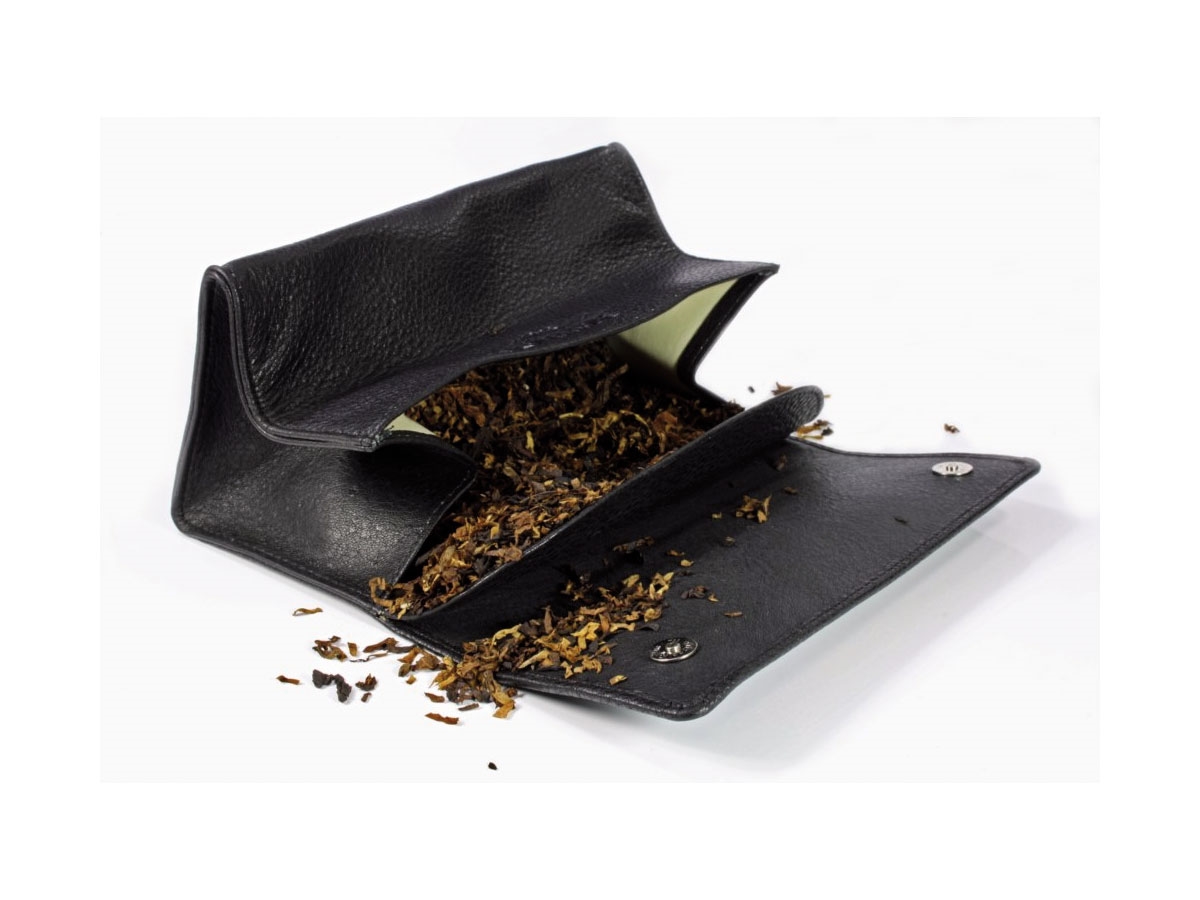 Ampia borsa portatabacco realizzata in morbida pelle di vacchetta.