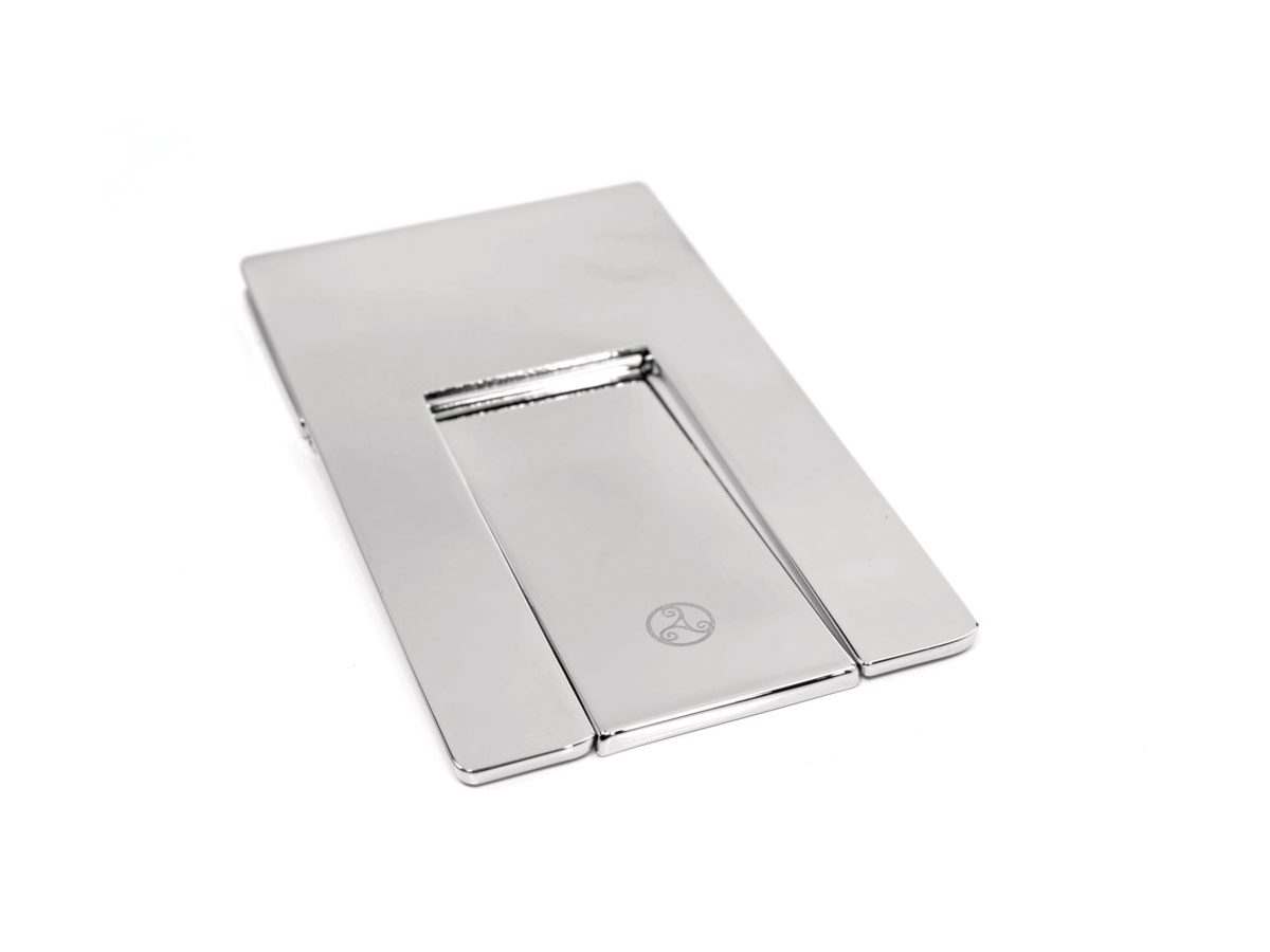 Rattrays POGGIASIGARI THE X SILVERPoggiasigari pieghevole in ottone con custodia in cuoio. Alto 7 cm, largo 4 cm, 42 grammi.