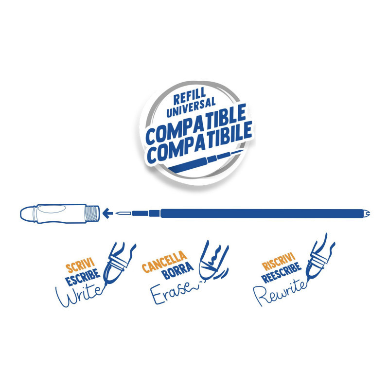 Il blister refill per penna cancellabile Oops nero è la scelta ideale per chi desidera continuare a utilizzare la propria penna preferita senza sprechi. Pensato per garantire prestazioni elevate e durature, questo set da 3 ricariche è compatibile con le penne cancellabili Oops e assicura una scrittura fluida, precisa e completamente riscrivibile grazie alla tecnologia termosensibile. Perfetto per la scuola, l’ufficio e l’uso quotidiano, permette di risparmiare riducendo al minimo l’impatto ambientale, senza rinunciare alla qualità.• Blister da 3 refill: la confezione contiene tre ricariche inchiostro nero, ideali per prolungare la durata della penna Oops nel tempo.• Inchiostro termosensibile: permette di scrivere e cancellare senza lasciare tracce, utilizzando l’effetto del calore generato dallo sfregamento con la gomma della penna.• Punta da 0,7 mm: offre un tratto fine e omogeneo, ideale per chi scrive con precisione su quaderni, agende o documenti.• Refill compatibili: le ricariche sono compatibili con tutte le penne Oops a inchiostro termosensibile, garantendo versatilità e facilità di sostituzione.Il blister refill Oops nero è una soluzione comoda e sostenibile, pensata per chi scrive molto e desidera avere sempre a disposizione una riserva di inchiostro affidabile e pronta all’uso.