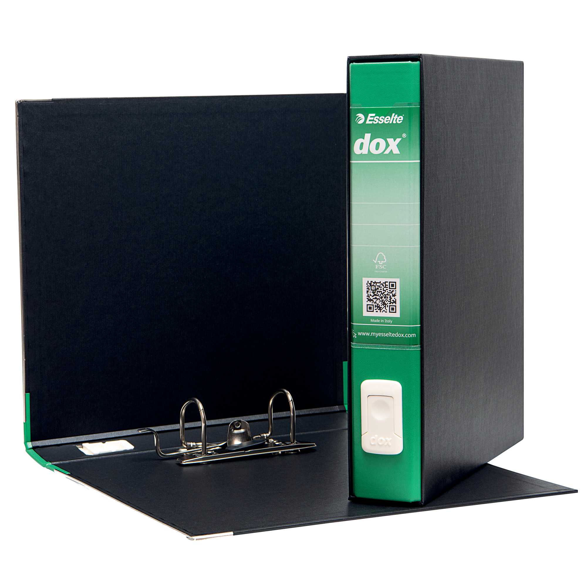 IL NUOVO DOX HA LA LINGUELLA PER L'ESTRAZIONE 3 VOLTE PIU' RESISTENTE, NUOVO DESIGN CON UNA PRESA PIU' ERGONOMICA, PIU' AGEVOLE E ARROTONDATA (UN'AREA RIENTRANTE SUGGERISCE IL GESTO CORRETTO PER L'ESTRAZIONE). STRUTTURA IN CARTONE RIVESTITO CON CARTA NERA GOFFRATA TRATTATA ANTIMPRONTA. CUSTODIA IN FIBRONE CON PARABORDI VERNICIATI. MECCANISMI A LEVA IN ACCIAIO NICHELATO CON PRESSINO. DORSO IN MATERIALE PLASTICO COLORATO CON PORTAETICHETTE TRASPARENTE. F.TO EST. LXH: 28.5X31.5CM . F.TO INT. LXH: 23X29.7CM.