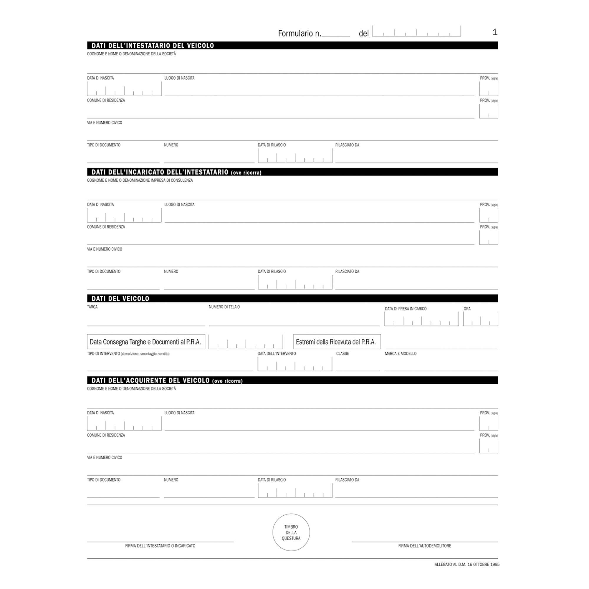 REGISTRO AUTODEMOLITORI 200PAG NUMERATE. COPERTINA FLESSIBILE.