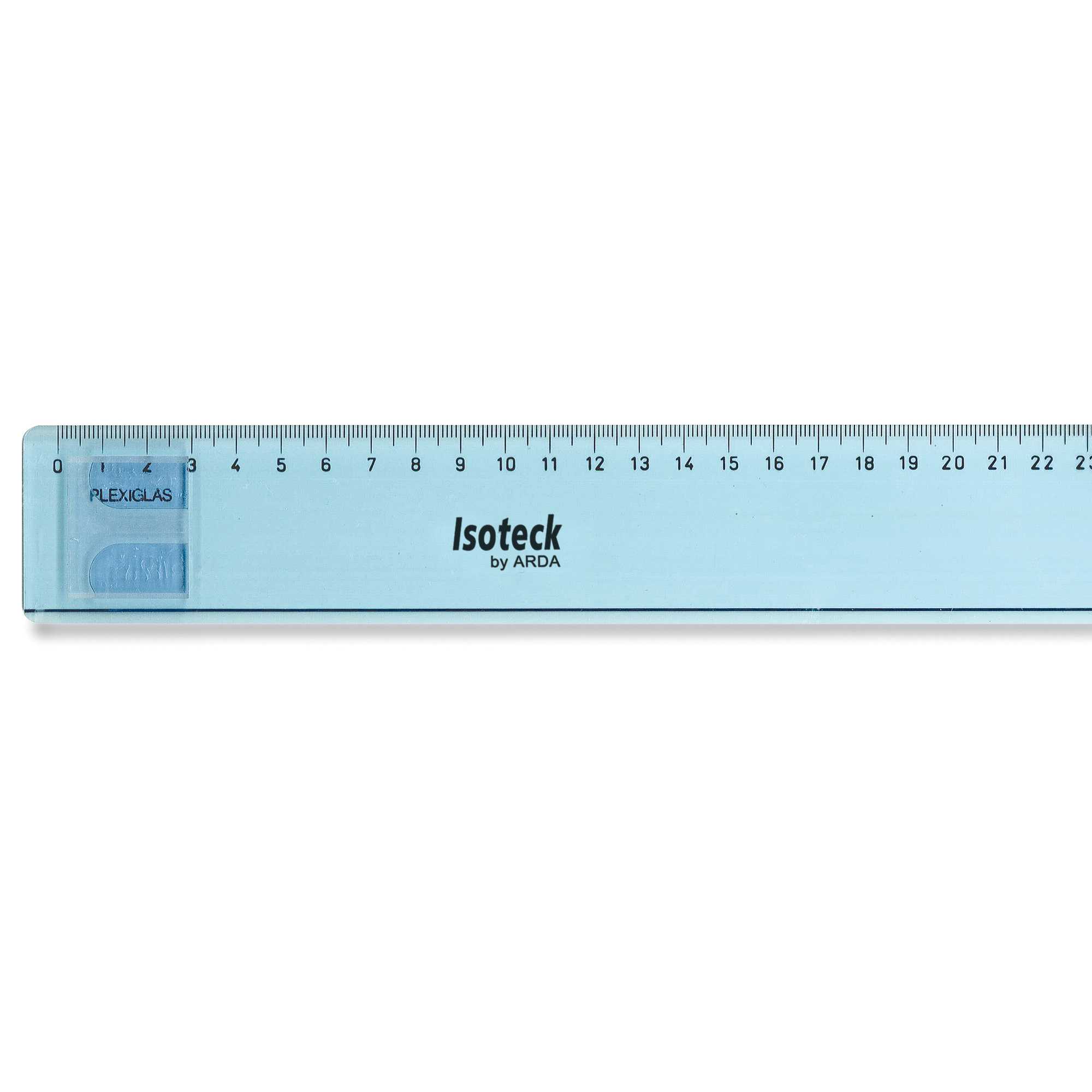 RIGA PER PARALLELOGRAFO IN PLEXIGLAS COLORE AZZURRO OTTICO. GRADUAZIONE INCISA. IN BUSTA PVC.