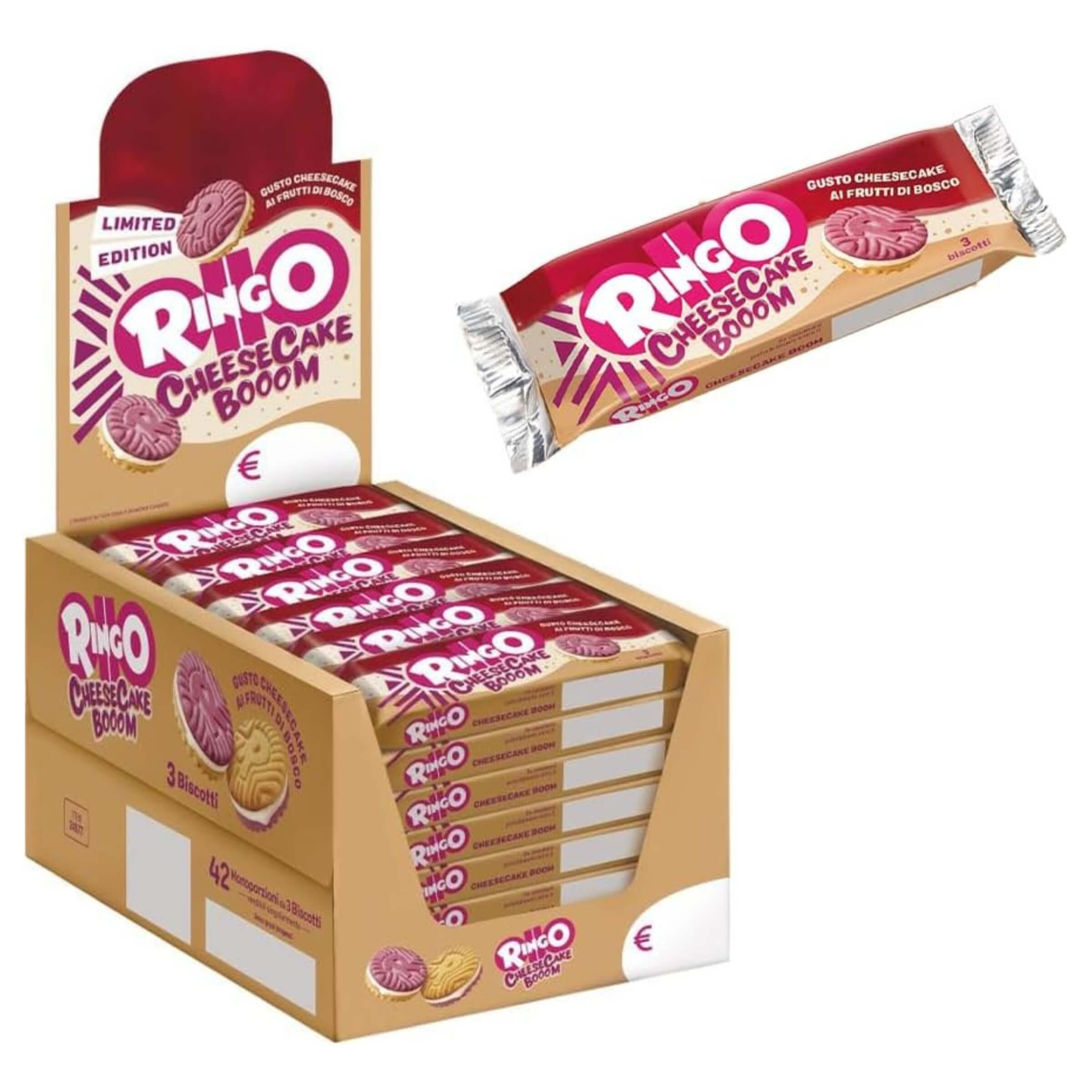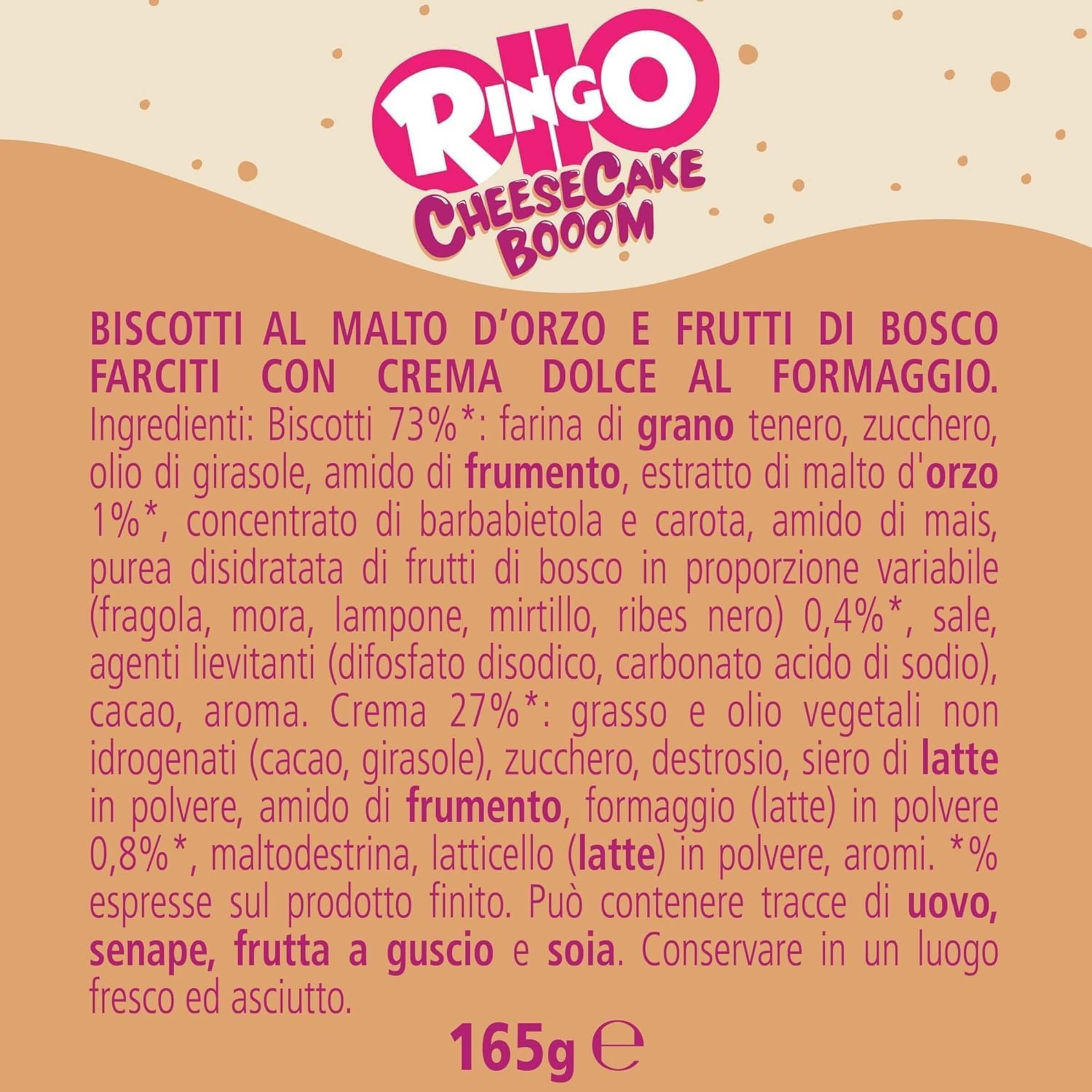 I Ringo Cheesecake Boom Limited Edition portano una ventata di novità nel mondo dei biscotti farciti, unendo la croccantezza dei classici Ringo a un gusto sorprendente e irresistibile ispirato alla cheesecake ai frutti di bosco. Un’esplosione di sapori che nasce dall’incontro tra il biscotto al malto d’orzo e il biscotto ai frutti di bosco, racchiudendo una morbida crema dolce al formaggio. Il risultato è un equilibrio perfetto tra la fragranza del biscotto e la cremosità del ripieno, ideale per concedersi una pausa golosa in ogni momento della giornata.