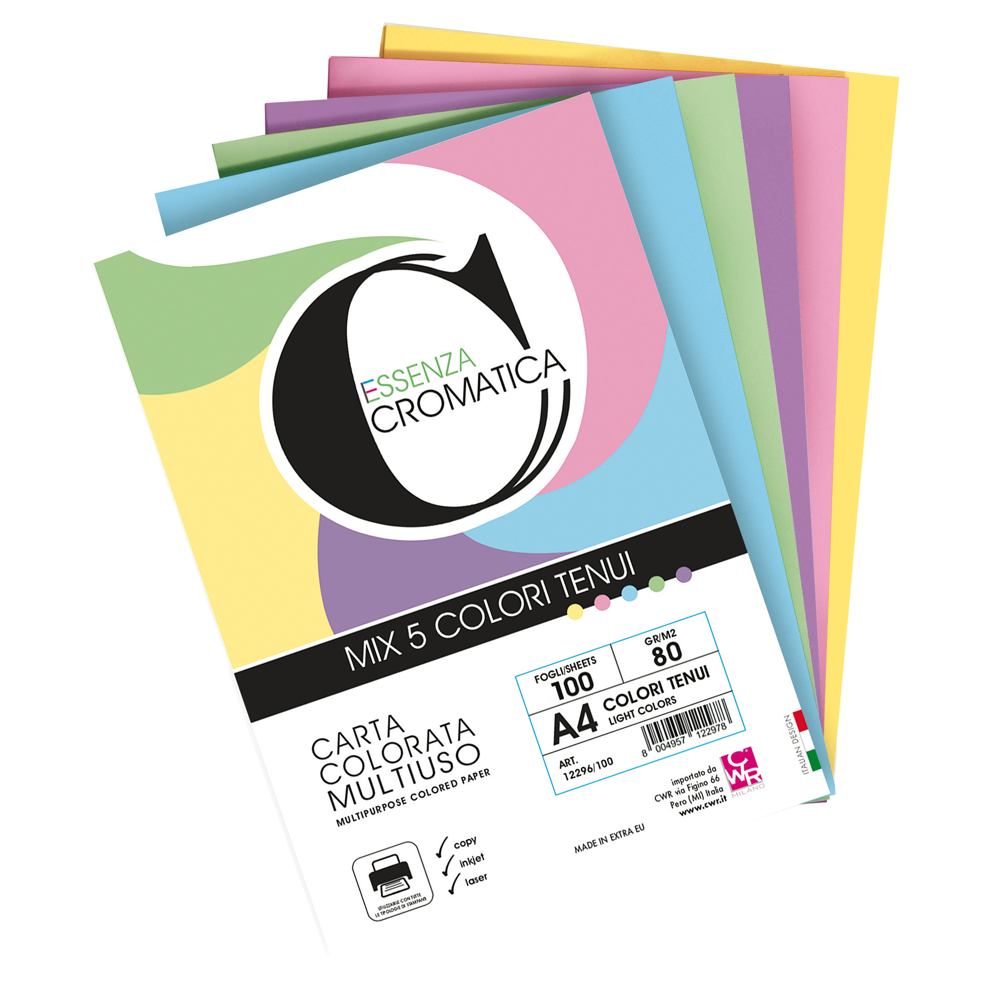 Risma Carta Cromatica CWR 80gr A4 Assortiti Tenui 100fg