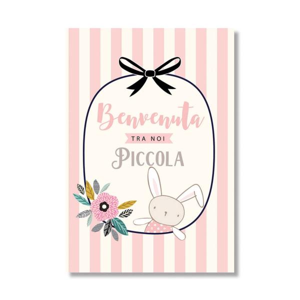 La nascita di una bambina porta con sé un mondo di emozioni, sorrisi e momenti da ricordare. Il biglietto augurale Nascita Rosa Pop Up “Benvenuta tra noi piccola” è un pensiero dolce e raffinato, perfetto per celebrare questo evento speciale con affetto e delicatezza. Il design elegante e tenero unisce una grafica a righe rosa pastello, un fiocco nero e un dolce coniglietto, creando un equilibrio armonioso tra semplicità e calore. Al suo interno, l’effetto tridimensionale pop up aggiunge un tocco di sorpresa e profondità, trasformando ogni augurio in un gesto che resta impresso nel cuore.• Design Pop Up: Il biglietto si apre rivelando un effetto tridimensionale curato e realistico, che aggiunge dinamismo e valore visivo al messaggio di benvenuto.• Tema Nascita Femminile: Le tonalità rosa e crema trasmettono tenerezza e serenità, rendendo il biglietto ideale per celebrare l’arrivo di una nuova vita con eleganza e dolcezza.• Qualità dei Materiali: Realizzato in cartoncino rigido con stampa nitida e colori resistenti nel tempo, garantisce un effetto visivo duraturo e un tocco vellutato al tatto.• Dettagli Curati: Il fiocco, i fiori e il coniglietto sono illustrati con attenzione per creare un equilibrio grafico che comunica amore e purezza, perfetto per le prime occasioni speciali.• Formato Singolo: Pensato per essere un biglietto indipendente, è adatto sia come accompagnamento a un regalo che come piccolo pensiero simbolico di benvenuto.Questo biglietto è una dichiarazione d’affetto racchiusa nella semplicità della carta. Ogni dettaglio, dal design alla scelta dei colori, è studiato per trasmettere emozioni genuine e per diventare un ricordo da custodire negli anni. Una creazione pensata per celebrare la magia dell’arrivo di una nuova vita con grazia e sentimento.