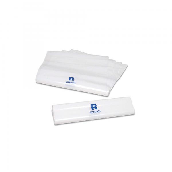 SACCHETTO PER RIFIUTI SANITARI CON CHIUSURA MINIGRIP E STAMPA ''R RIFIUTI''. FORMATO 18X25CM. Composto da 100