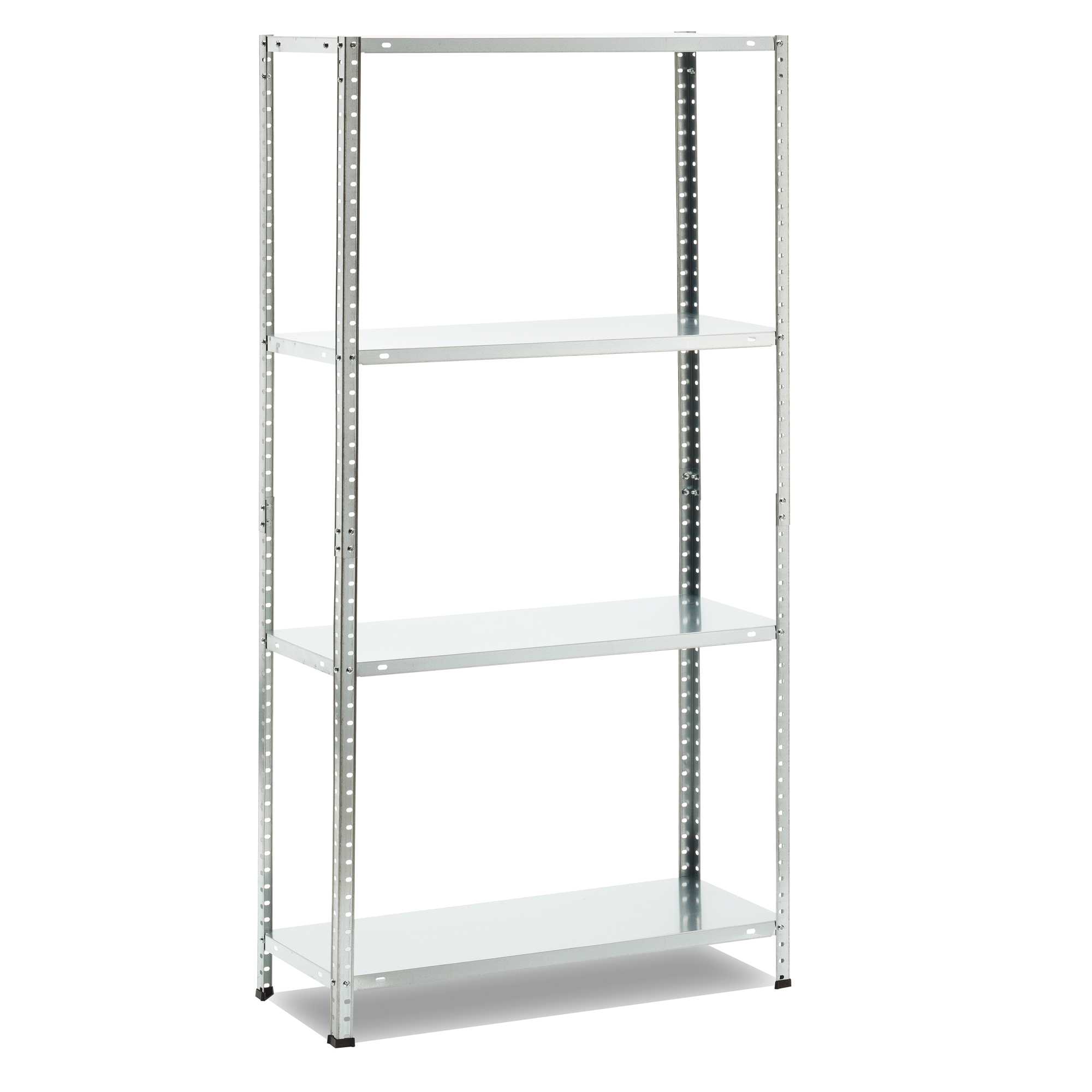 SCAFFALE IN METALLO GALVANIZZATO A BULLONI CON 4 RIPIANI, SPESSORE 0,4 MM, PORTATA MASSIMA 45 KG PER RIPIANO UNIFORMEMENTE DISTRIBUITI. SPESSORE STRUTTURA 0,55 MM. PRODOTTO DA ASSEMBLARE. DIMENSIONI: 147X30X75CM.ARTICOLO DESTINATO AD ESCLUSIVO USO DOMESTICO. NON ADATTO AD USO PUBBLICO.