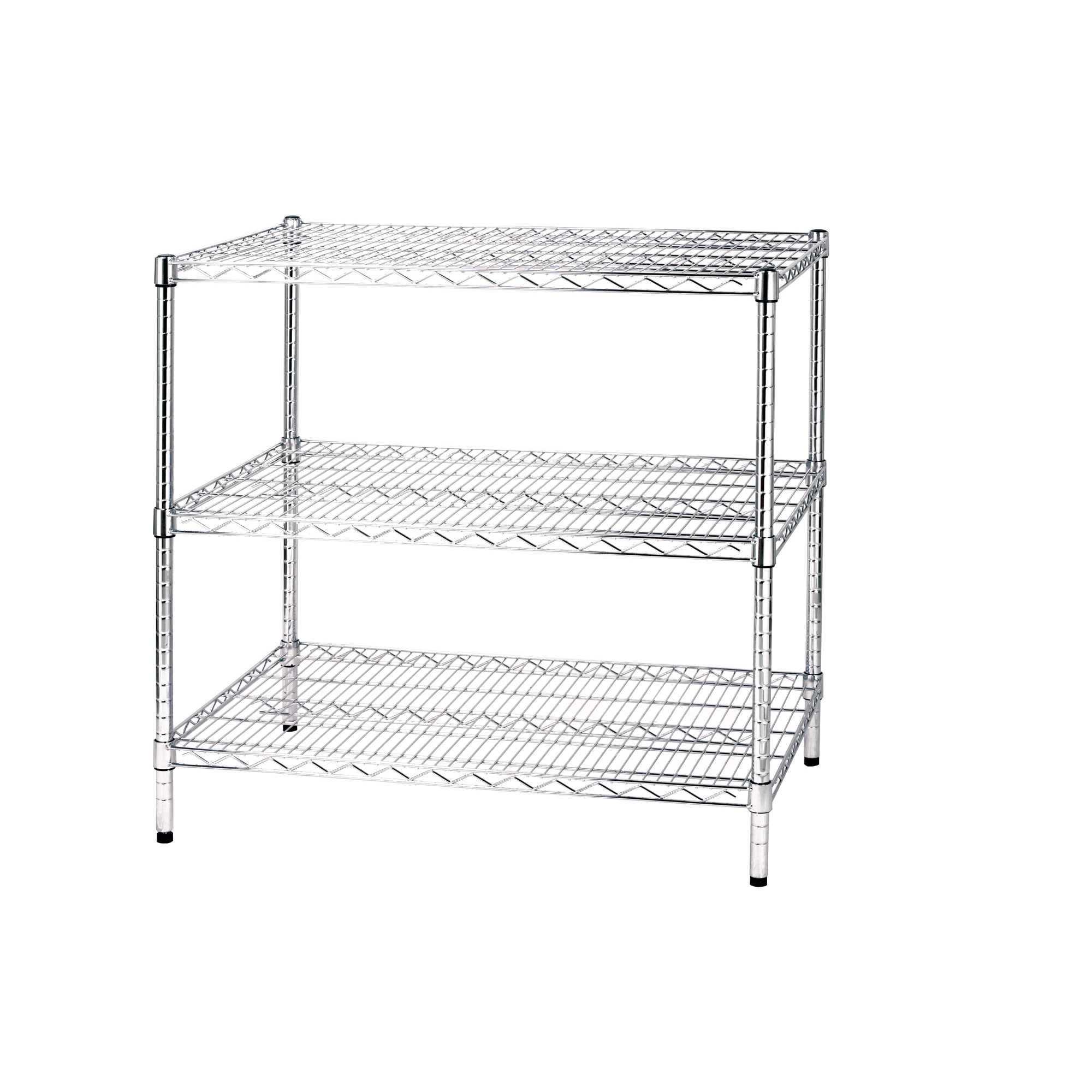 KIT SCAFFALI IN ACCIAIO CROMATO CON TUBOLARI D 2,54CM E PIEDINI REGOLABILI PROFONDITA' SCAFFALI 60CM ADATTI PER ARCHIVI E MAGAZZINI. 3 RIPIANI DIMENSIONI TOTALI: 60X90CM H90CM. PORTATA 100KG.