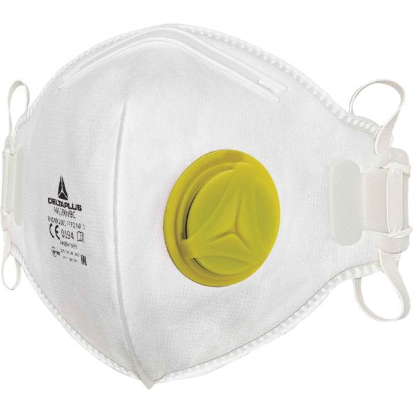 MASCHERINA FILTRANTE FFP2 IN TESSUTO NON TESSUTO. STRINGINASO REGOLABILE. VALVOLA DI ESPIRAZIONE ALTA PERFORMANCE. PIEGAMENTO VERTICALE. SCATOLA DA 10 MASCHERINE IMBUSTATE SINGOLARMENTE. CATEGORIA DPI: 3. CERTIFICAZIONE CE. CONFORMITA' ALLA NORMA EN149:2001+A1:2009.