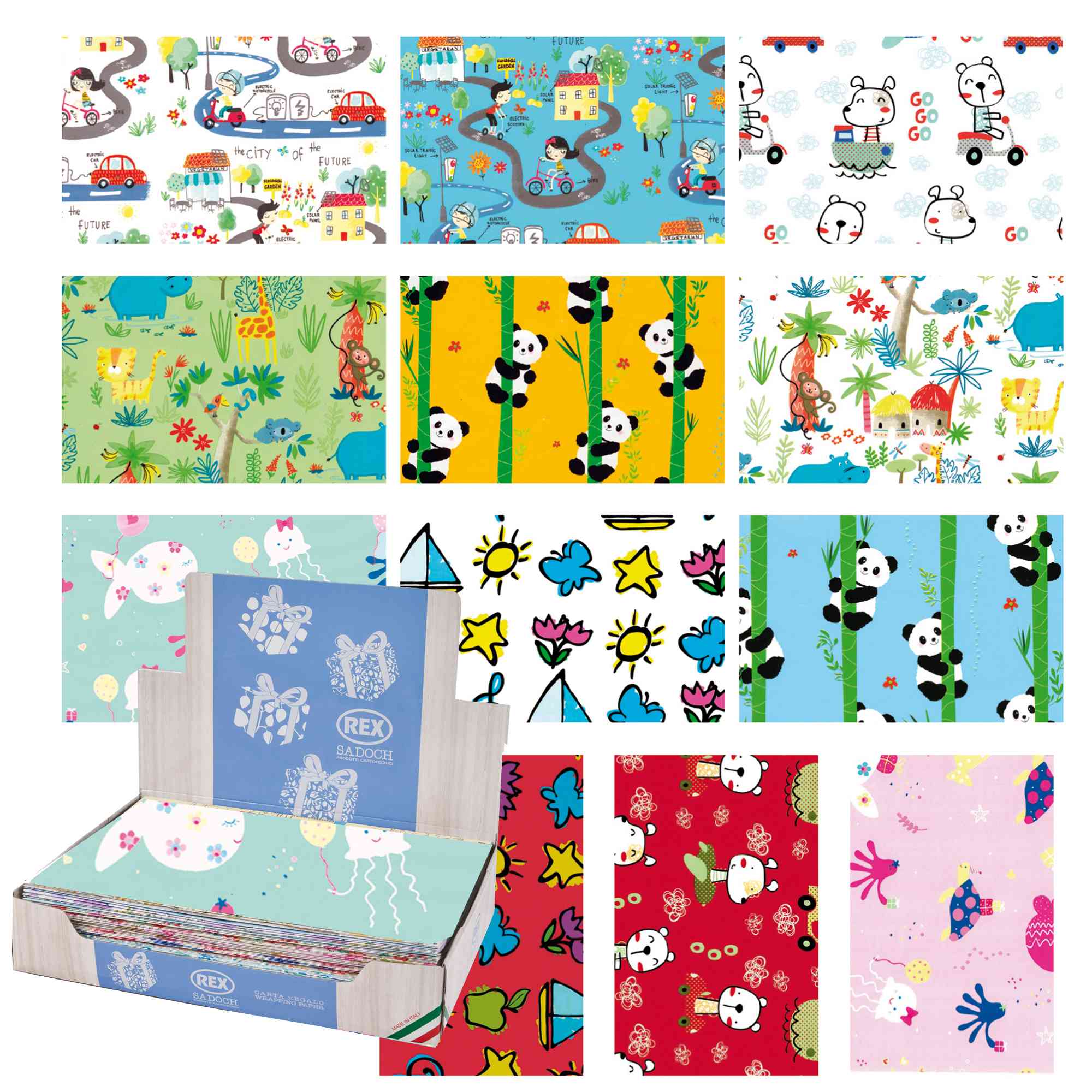 Scatola 100fg carta regalo Raso Bambini 70X100cm Rex Sadoch