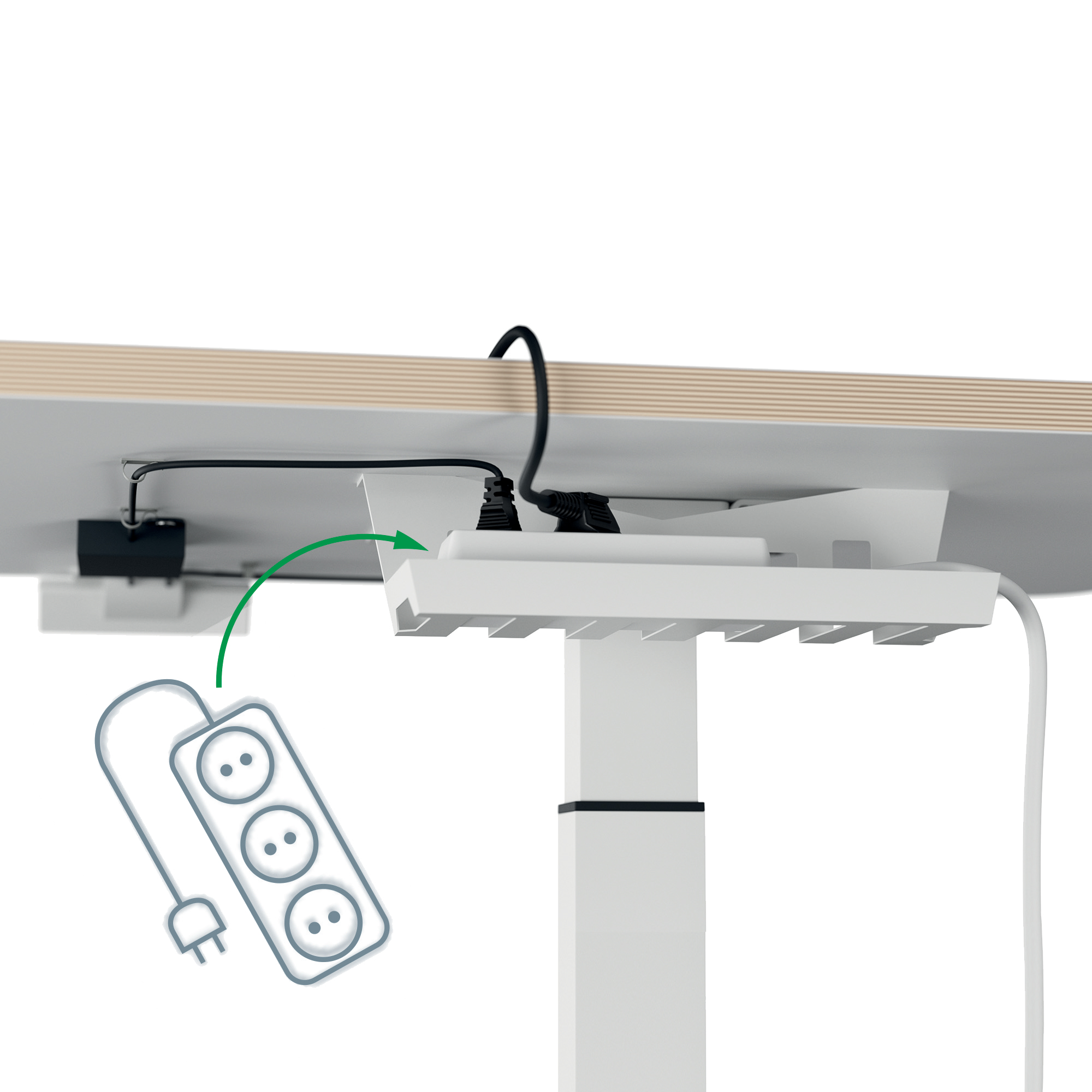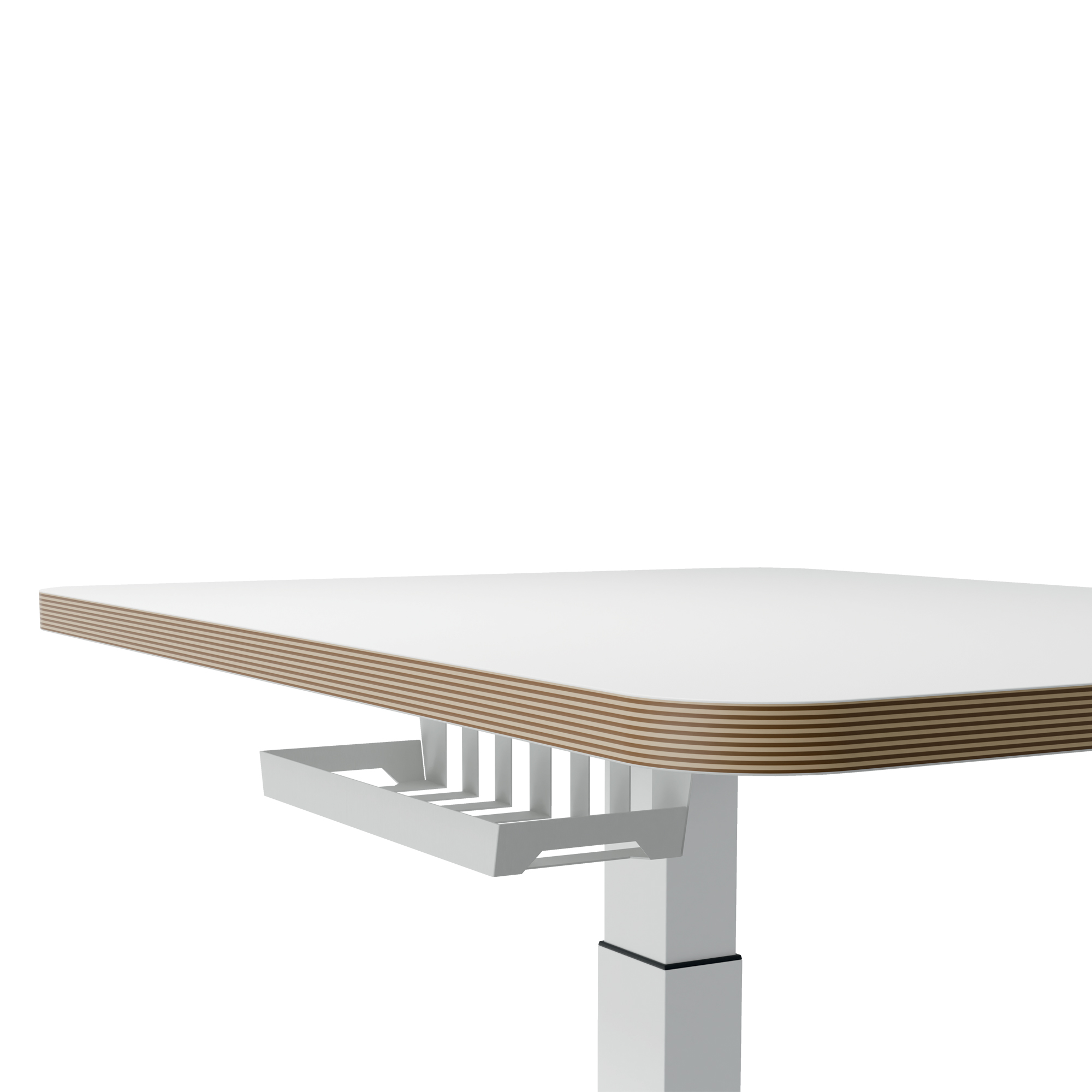 La scrivania E' progettata per un uso flessibile e come spazio di lavoro temporaneo, perfetto per l'home office e le aree di hot desking con funzione di memoria per regolare rapidamente 4 impostazioni di altezza preimpostate. 80 x 60 x 2,5 cm di scrivania con un carico massimo di 80 kg per contenere un monitor e un computer portatile con supporto, tastiera, mouse e poggiapolsi